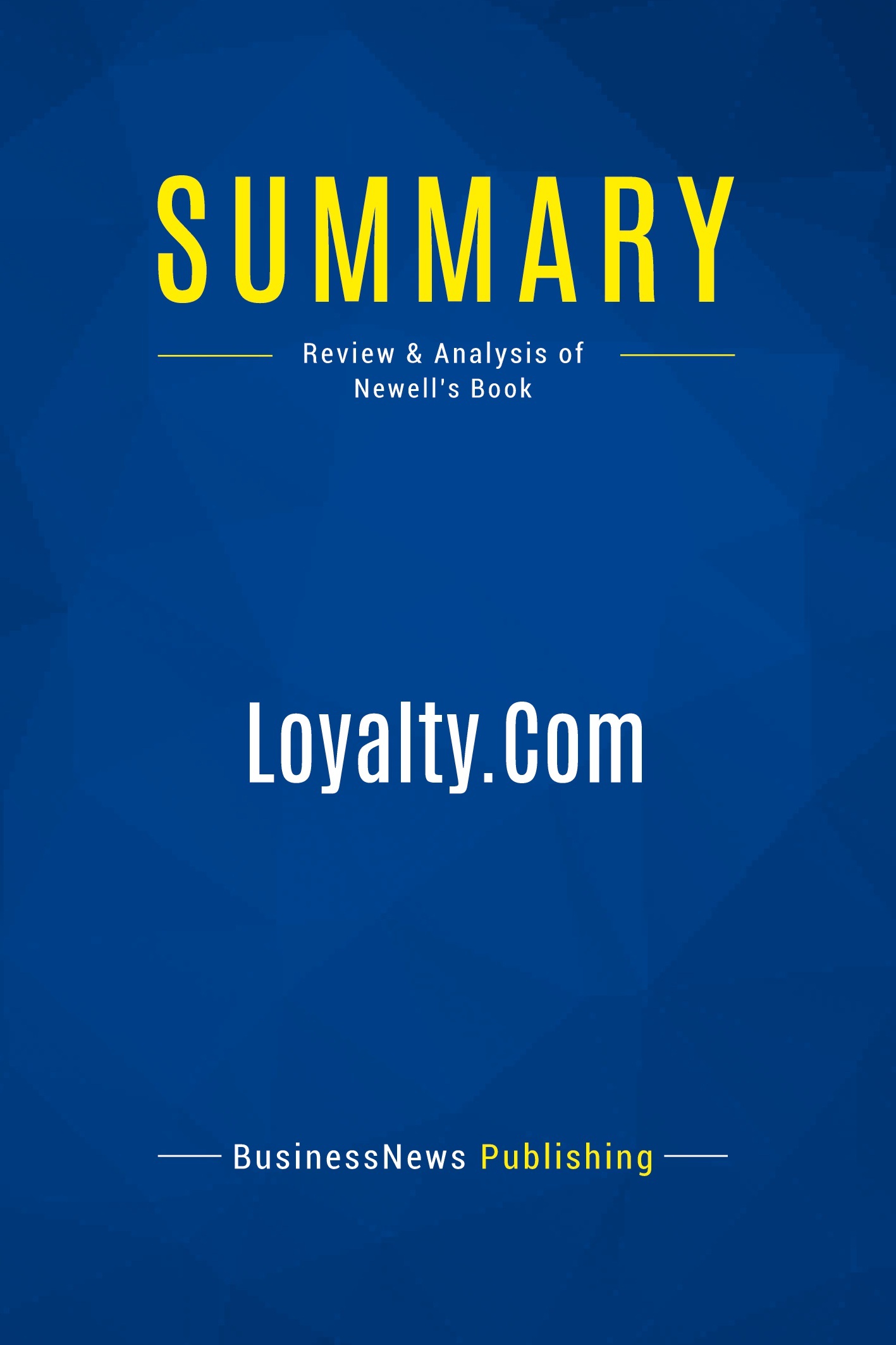 The must-read summary of Frederick Newell's book: "Loyalty.Com: Customer Relationship Management in the New Era of Internet Marketing". This complete summary of the ideas from Frederick Newell's book "Loyalty.Com" shows how Customer Relationship Management is the process of making it easier and easier for customers to do business with you because you understand what they need better than anyone else. In his book, the author demonstrates some proven techniques for nurturing the company-customer relationship and how to find out what customers want and act accordingly. This summary will teach you how to adopt the correct techniques to take advantage of this strategy and the benefits that it could bring to your business. Added-value of this summary: • Save time • Understand key concepts • Expand your knowledge To learn more, read "Loyalty.Com" and learn how to create great relationships in order to increase your company's profits.