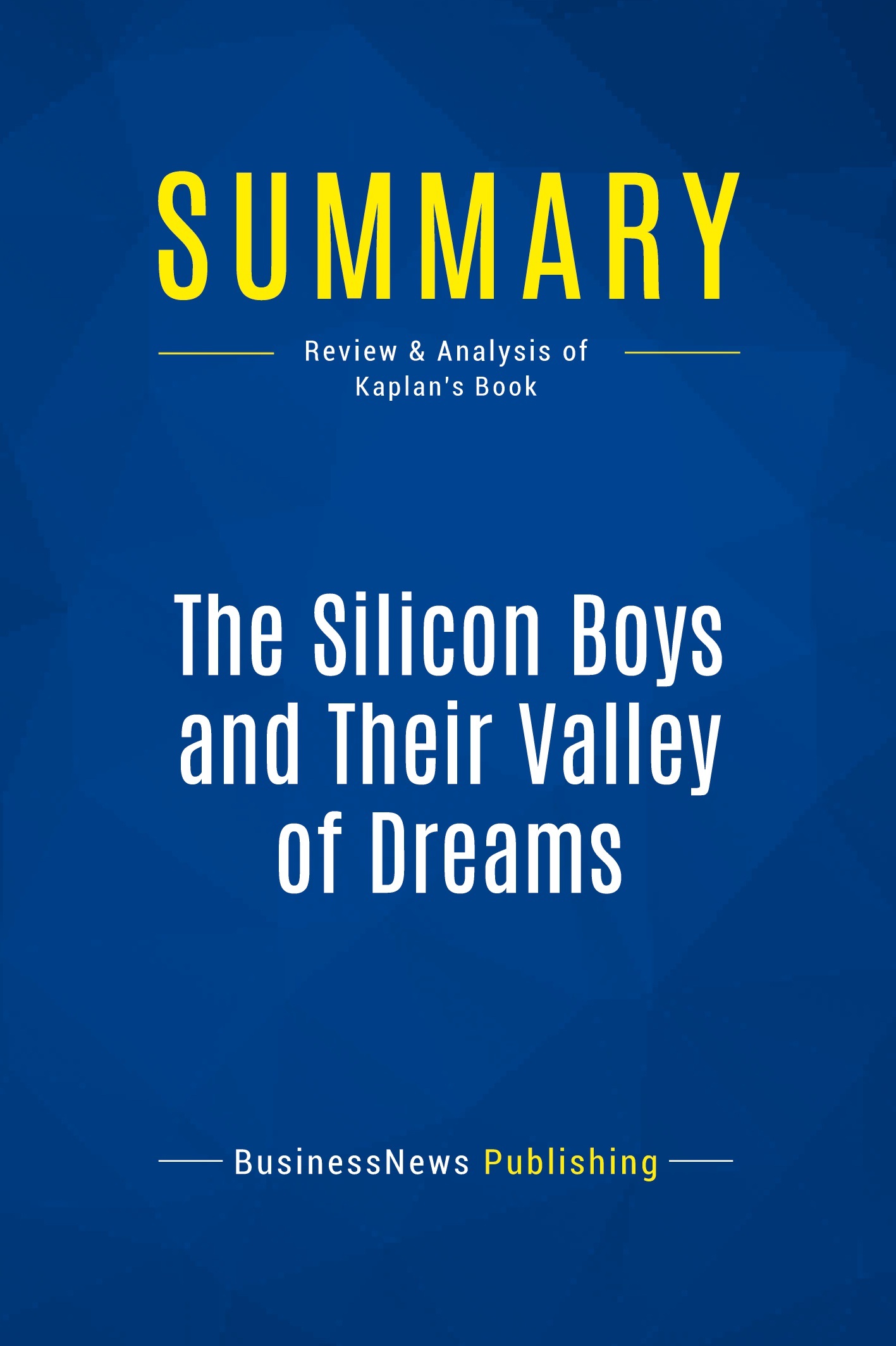 The must-read summary of David Kaplan's book: "The Silicon Boys and their Valley of Dreams: The Meek Didn't Inherit the Earth. The Geeks Did.". This complete summary of the ideas from David Kaplan's book "The Silicon Boys and their Valley of Dreams" reveals the history and culture of Silicon Valley. In his book, the author brilliantly captures the image of the area that has now become the epicenter of the New Economy and the symbol of high-tech, genius and ineffable wealth. This summary is a must-read for anyone who wants to know more about the people behind these world-class companies and how they achieved success. Added-value of this summary: • Save time • Understand key concepts • Expand your knowledge To learn more, read "The Silicon Boys and their Valley of Dreams" and discover more about the story behind one of the most dynamic places on the planet.