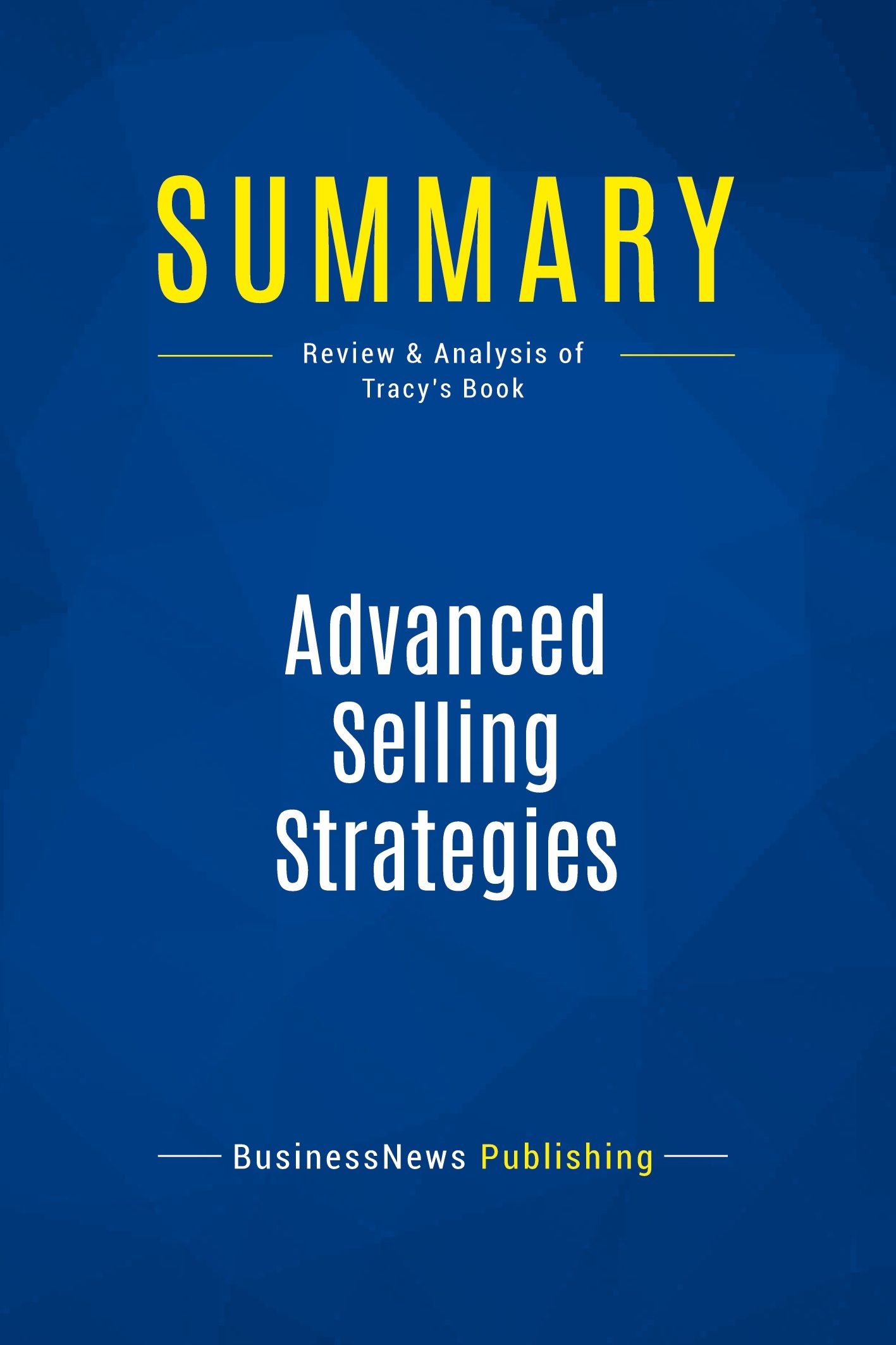 The must-read summary of Brian Tracy's book: "Advanced Selling Strategies: The Proven System of Sales Ideas, Methods and Techniques Used by Top Salespeople Everywhere". This complete summary of the ideas from Brian Tracy's book "Advanced Selling Strategies" shows how the best way of improving your sales strategy is to learn from the best. The author highlights the key steps for developing a relationship with a client and preparing them for a sale. By learning and applying the strategies detailed in this book, you can start thinking strategically and improve every aspect of your approach to make that sale every time. Added-value of this summary: • Save time • Understand key concepts • Expand your sales knowledge To learn more, read"Advanced Selling Strategies" to develop the best sales strategy and give yourself an edge in every sales situation.