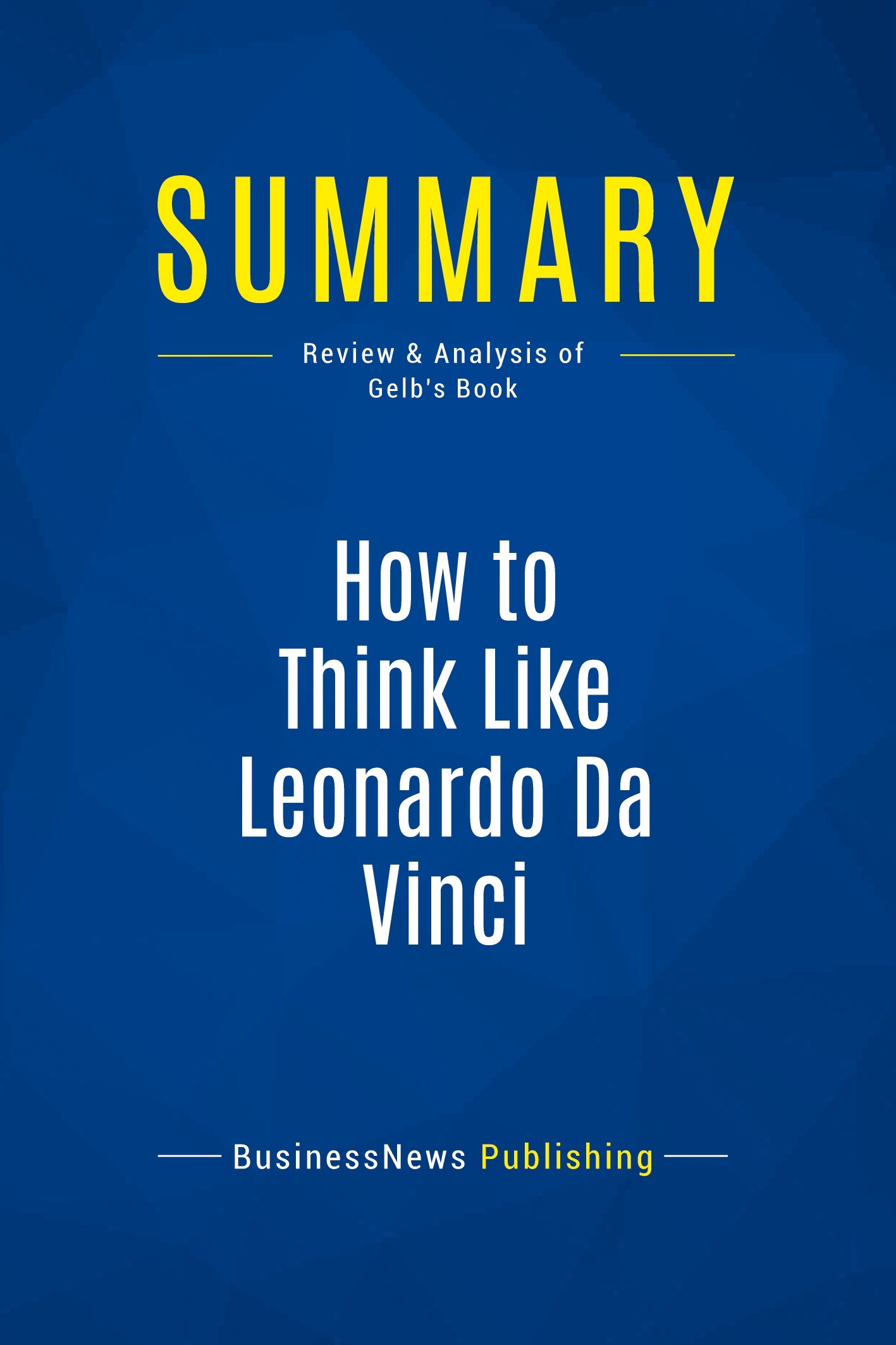 The must-read summary of Michael J. Gelb's book "How to Think Like Leonardo Da Vinci: Seven Steps to Genius Every Day". This complete summary of the ideas from Michael J. Gelb's book "How to Think Like Leonardo Da Vinci" shows how many of the achievements of genuises such as Da Vinci were the result of practical, everyday measures and the right mindset. It looks to Da Vinci for clues and suggestions on how to creatively and productively manage change, and introduces the seven elements of genius that you can apply to your own life. Added-value of this summary: • Save time • Understand the key elements • Expand the power of your own genius To learn more, read "How to Think Like Leonardo Da Vinci" and follow Gelb's step-by-step lessons to add a dash of genius to your life.