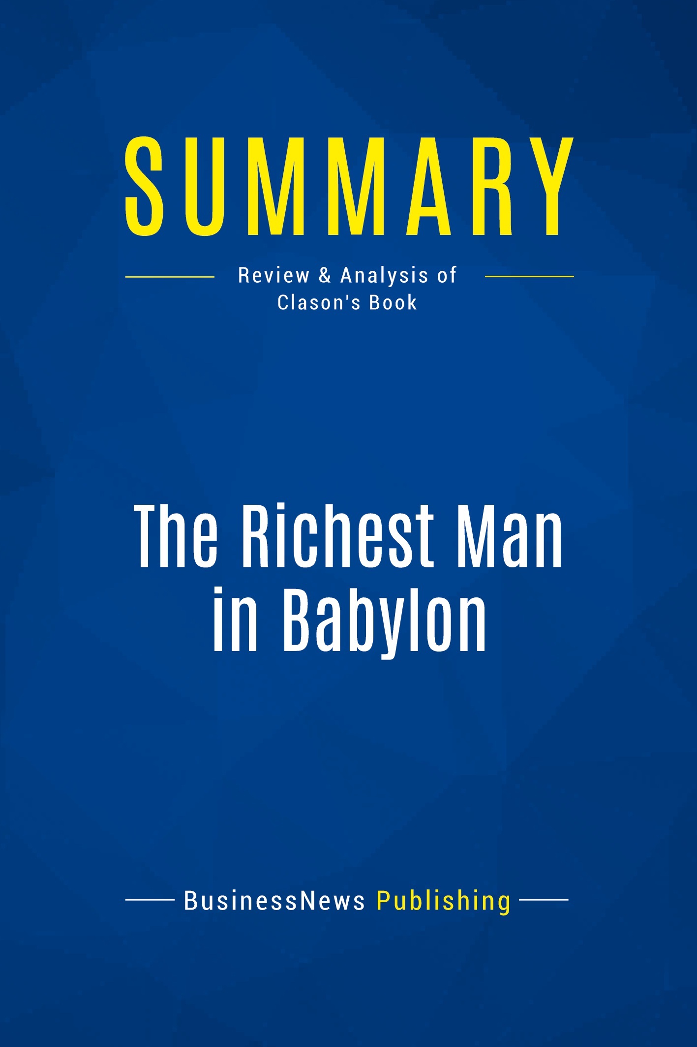The must-read summary of George S. Clason's book "The Richest Man in Babylon: Success Secrets of the Ancients". This complete summary of the ideas from George S. Clason's book "The Richest Man in Babylon" explains how to be financially successful in order to achieve future dreams and ambitions. This useful summary provides you with timeless financial principles, as well as the basics of effective money management, thus giving you the tools to make your business thrive. Added-value of this summary: • Save time • Understand key concepts • Improve your chances of financial success To learn more, read "The Richest Man in Babylon" and discover how to manage your money effectively.