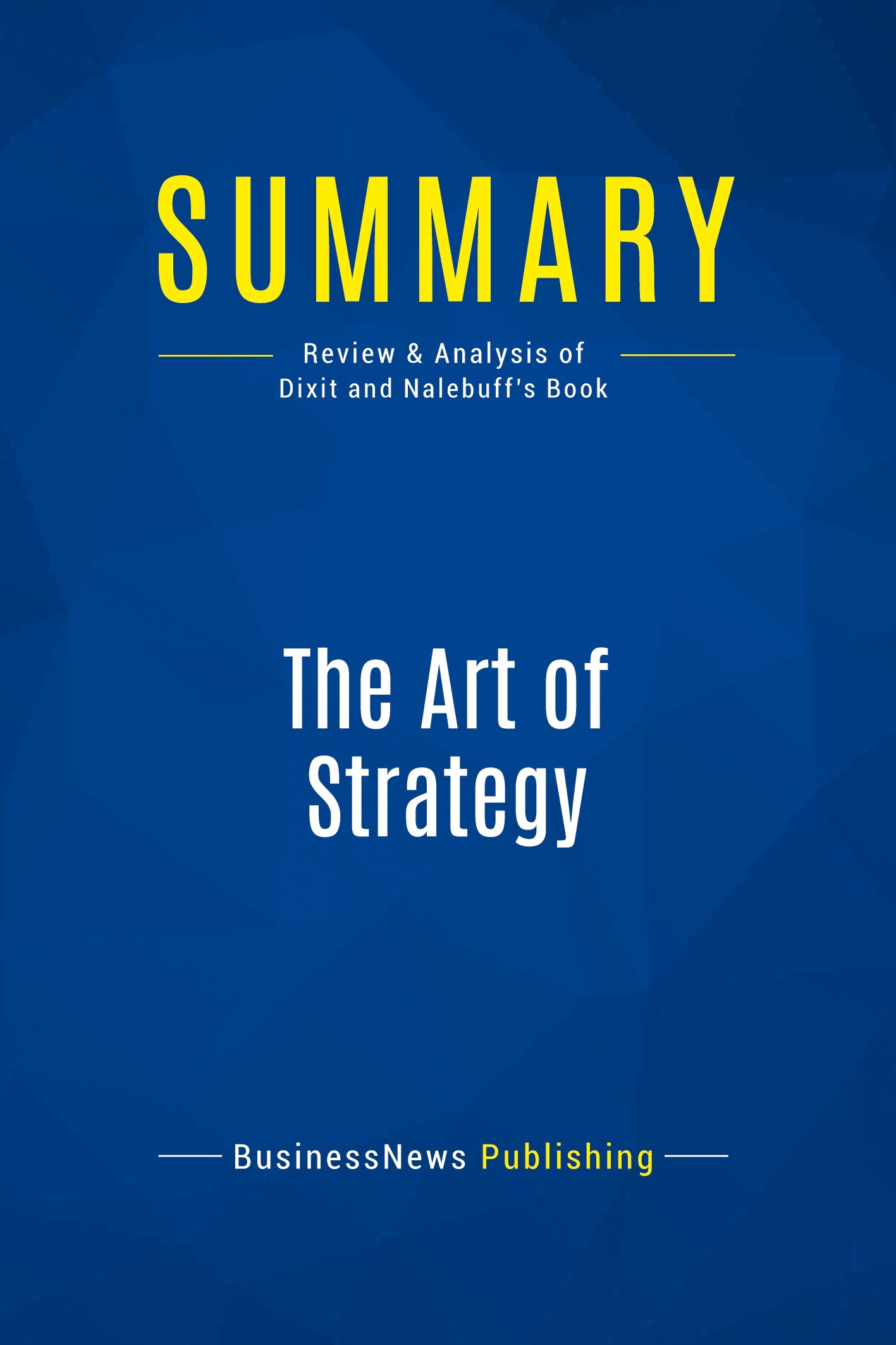 The must-read summary of Avinash Dixit and Barry Nalebuff's book: "The Art of Strategy: A Game Theorist's Guide to Success in Business and in Life". This complete summary of the ideas from Avinash Dixit and Barry Nalebuff's book "The Art of Strategy" shows how game theory can be relevant and applicable to contexts other than academia, as it aids strategic thinking. In their book, the authors explain the basic rules of game theory, breaking down each section into easy-to-understand segments with real-life examples. This summary is a clear guide to using game theory in all areas of your life to help you make strategic decisions. Added-value of this summary: • Save time • Understand key concepts • Expand your knowledge To learn more, read "The Art of Strategy" and become an expert at using game theory to create the best strategies.