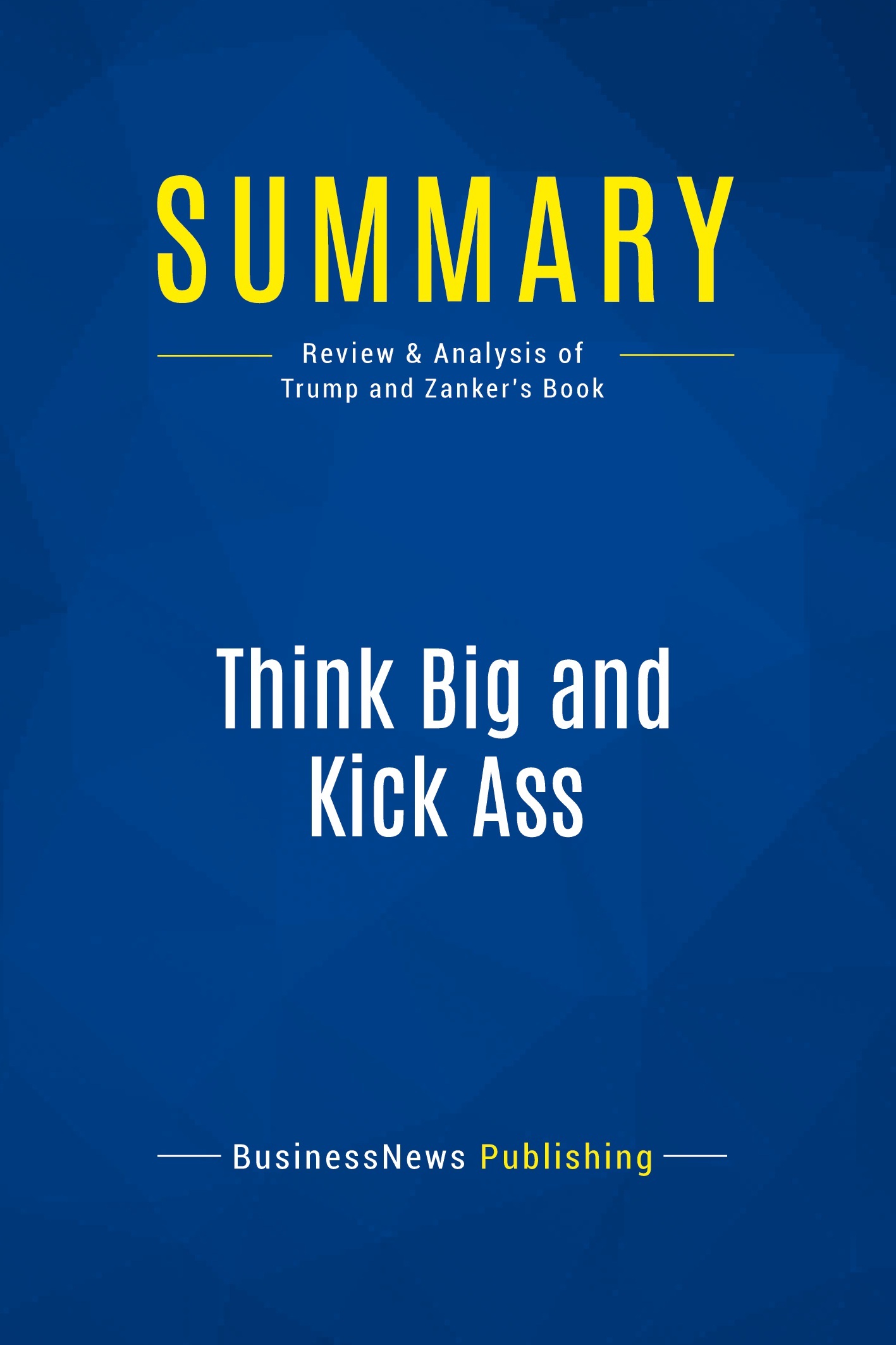 The must-read summary of Donald Trump and Bill Zanker's book: "Think Big and Kick Ass - In Business and in Life". This complete summary of the ideas from Donald Trump and Bill Zanker's book "Think Big and Kick Ass" shows how there's no use in having small dreams. Instead, you should dream big, aim for the top and then work hard to make your dreams happen. In their book, the authors explain that your dream is what you generally end up doing, so if you want to make bucket loads of money, set an audacious goal and make it happen. This summary provides you with the keys to do exactly that, using the authors' advice and experience. Added-value of this summary: • Save time • Understand key concepts • Expand your knowledge To learn more, read "Think Big and Kick Ass" and find out how to maximise your personal and professional achievements.