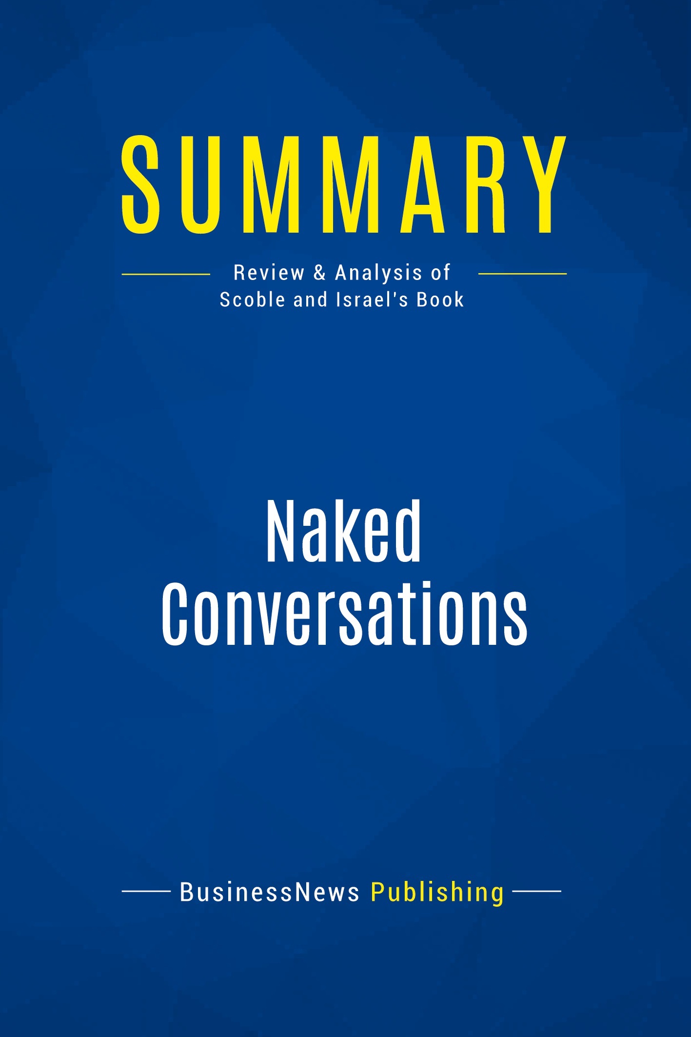 The must-read summary of Robert Scoble and Shel Israel's book: "Naked Conversations: How Blogs Are Changing the Way Businesses Talk with Customers". This complete summary of the ideas from Robert Scoble and Shel Israel's book "Naked Conversations" shows how blogs changed from being quirky entities for exhibitionists to crossing over into the broader business community. "Blogging" is becoming an extremely effective form of two-way communication between companies and their customers. In their book, the authors explain how blogs make customers feel that they are getting inside information about what's happening inside the corporation. This summary demonstrates how running a blog can prompt conversation between you and your customer and how you can reach out to new customers. Added-value of this summary: • Save time • Understand key concepts • Expand your knowledge To learn more, read "Naked Conversations" and discover how you can use blogging as a powerful communications tool between you and your customers.