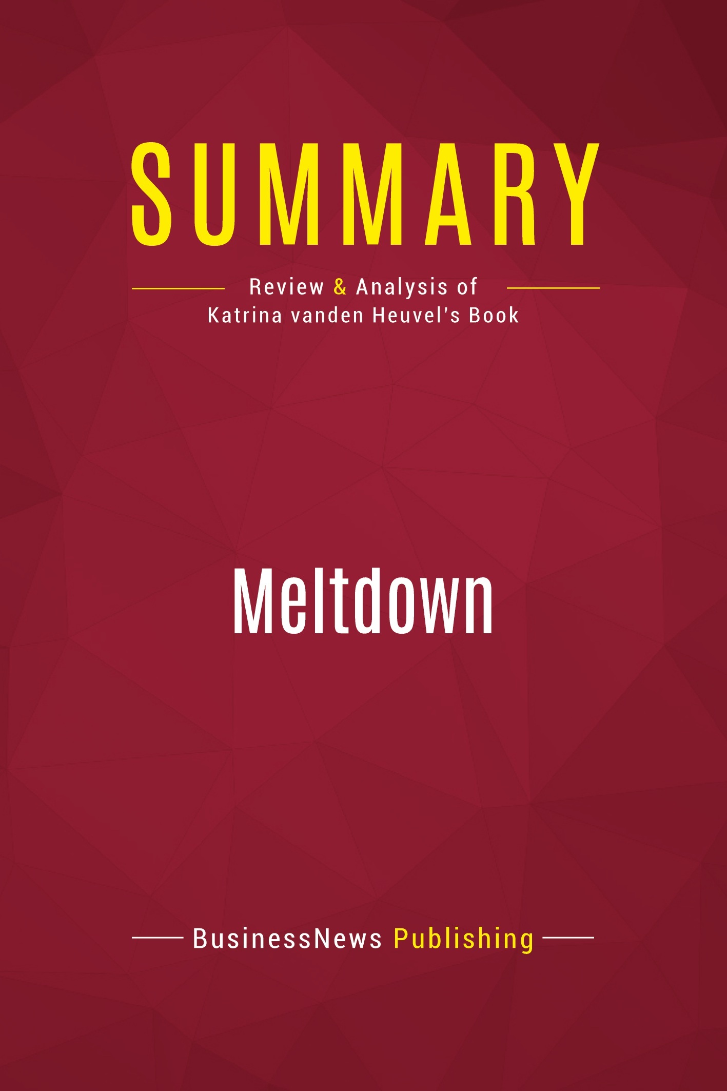 The must-read summary of Katrina vanden Heuvel's book: "Meltdown: How Greed and Corruption Shattered Our Financial System and How We Can Recover". This complete summary of "Meltdown" by Katrina vanden Heuvel, a renowned American editor, presents a collection of contributions on the financial crisis and analyses what the Obama administration may be able to do to ensure a more secure future for everyone. Added-value of this summary: • Save time • Understand the financial crisis and what might be done to mitigate its effects • Expand your knowledge of economics and politics To learn more, read "Meltdown" and discover how the financial crisis happened and what can be done to reduce its effects.