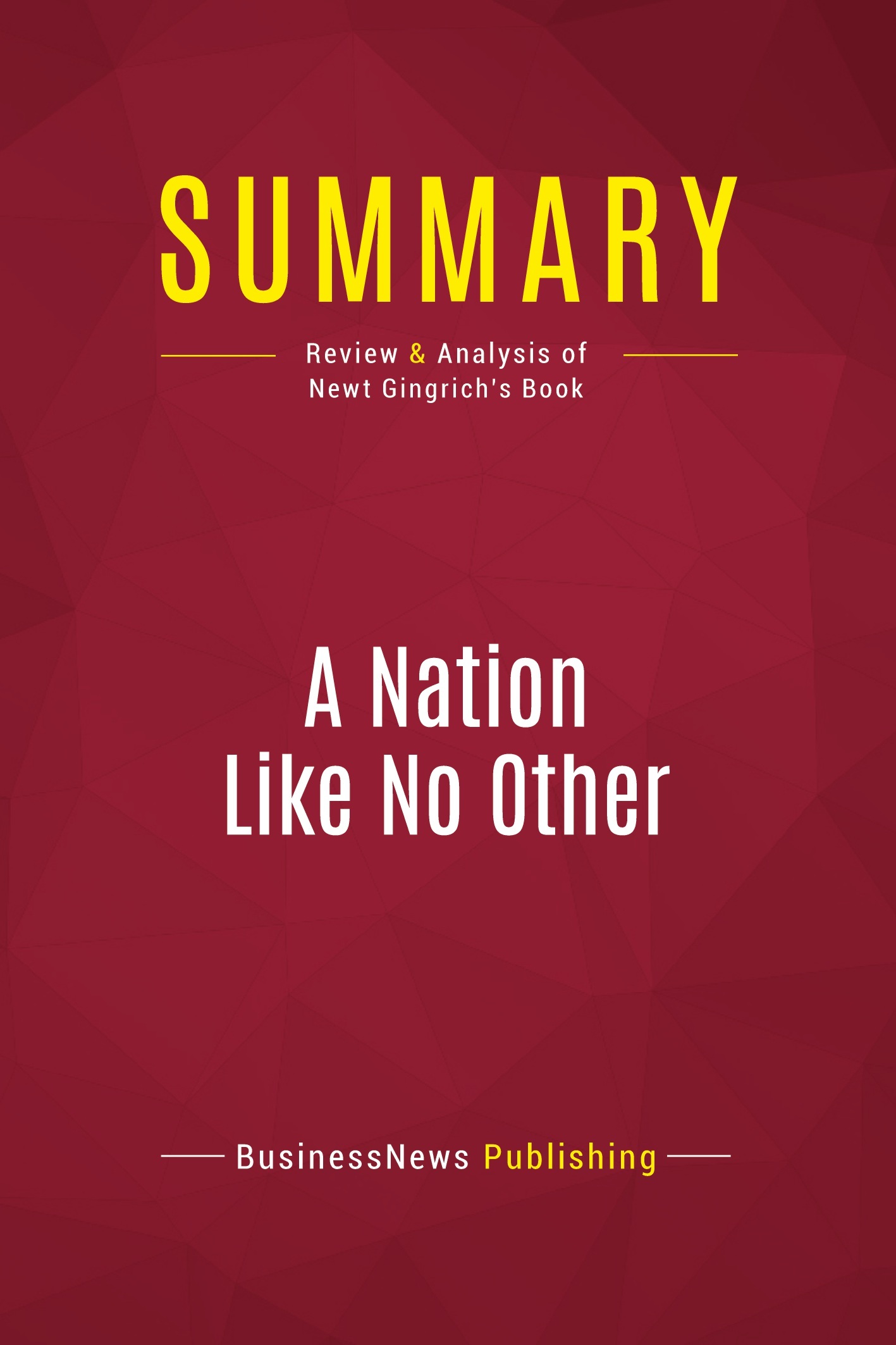 The must-read summary of Newt Gingrich's book: "A Nation Like No Other: Why American Exceptionalism Matters". This complete summary of "A Nation Like No Other" by Newt Gingrich, a Republican politician and former speaker of the United States House of Representatives, discusses the phenomenon of American Exceptionalism, the belief that America has a unique and significant role to play in the world, as conceived by the country's founding fathers. He argues that it is essential for the survival of the nation, the protection of American liberties and ensuring that America remains the most powerful and prosperous nation on earth. Added-value of this summary: • Save time • Understand American Exceptionalism • Expand your knowledge of American society and politics To learn more, read "A Nation Like No Other" and discover why Gingrich believes that national exceptionalism is key to the survival of the world's most powerful country.