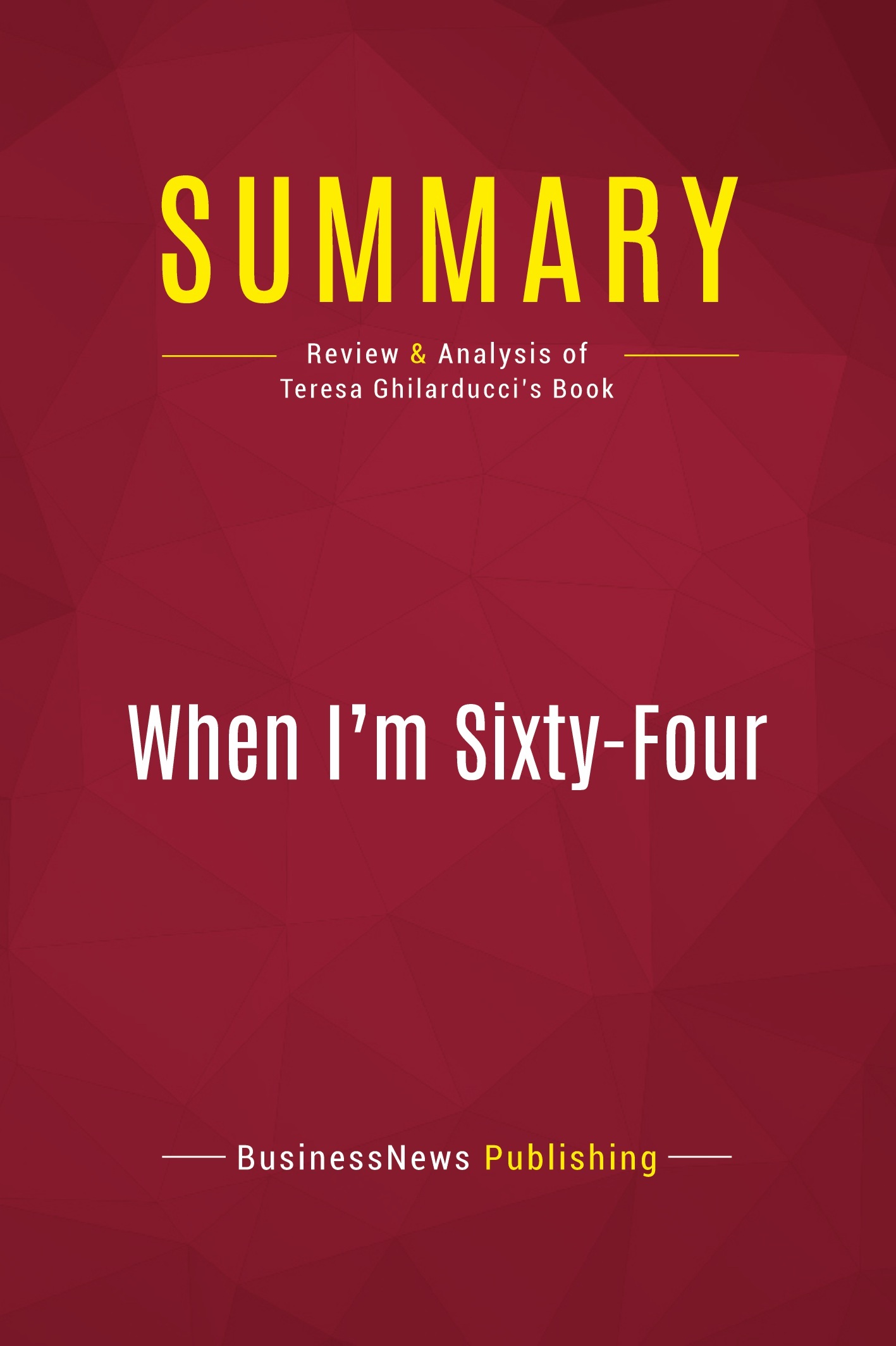 The must-read summary of Teresa Ghilarducci's book: "When I'm Sixty-Four: The Plot Against Pensions and the Plan to Save Them". This complete summary of "When I'm Sixty-Four" by Teresa Ghilarducci, a prominent labor economist and commentator on retirement and pension issues, presents the author's examination of the problems that arise from the insecurity of retirement income. She addresses various ways of rescuing the pension system. Added-value of this summary: • Save time • Understand pensions and retirement in the US • Expand your knowledge of American politics and society To learn more, read "When I'm Sixty-Four" and discover the author's proposed reforms to the pension system to the benefit of many people.