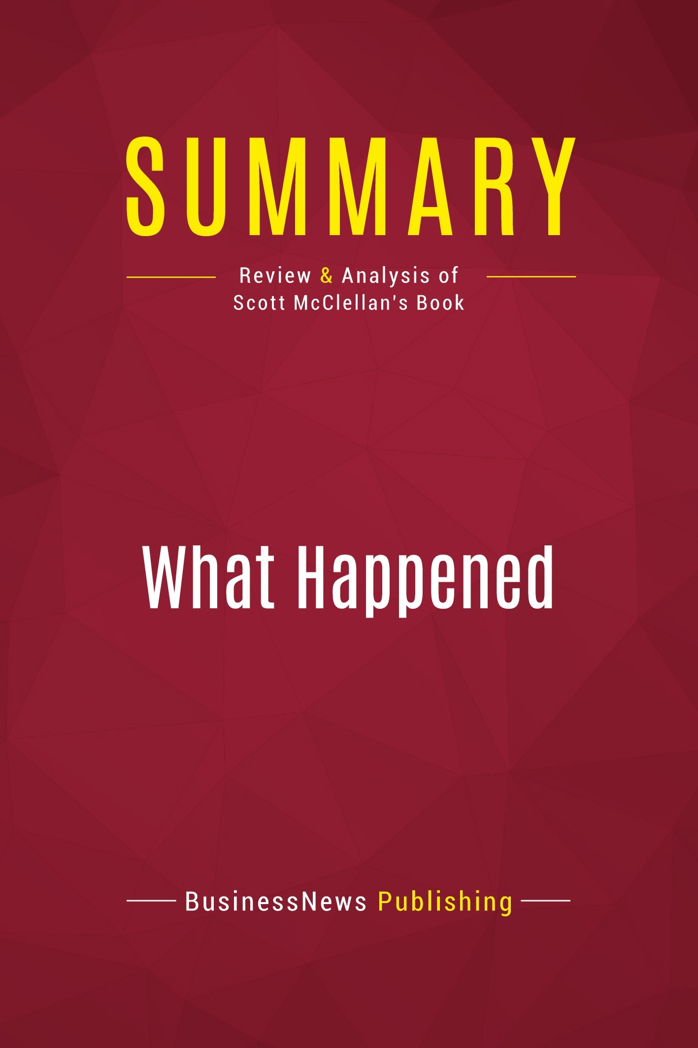 The must-read summary of Scott McClellan's book: "What Happened: Inside the Bush White House and Washington's Culture of Deception". This complete summary of "What Happened" by Scott McClellan, a former trusted adviser to the Bush White House, outlines the author's unique perspective on the controversial elements of Bush's presidency, such as Hurricane Katrina and the Iraq War, and what motivated his decisions. He also takes a look at who George W. Bush is and what he believes in. Added-value of this summary: • Save time • Understand Bush's presidency and the motivations behind his more controversial decisions • Expand your knowledge of American politics and policy To learn more, read "What Happened" and discover the untold truths from a trusted adviser within the Bush White House.