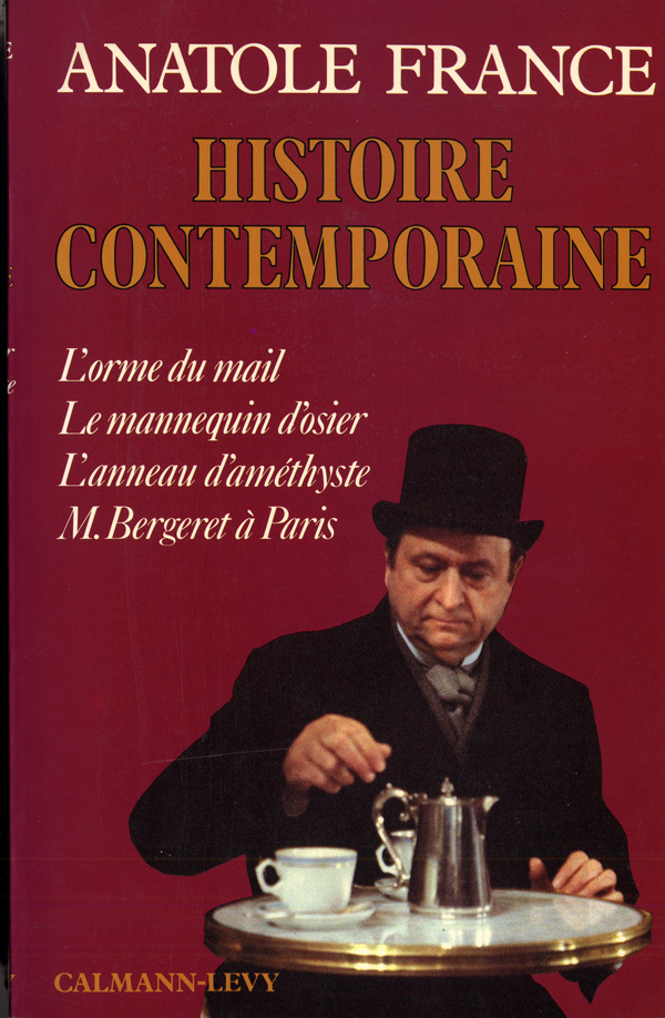 L'histoire contemporaine est une fresque, en quatre volumes, de la vie française en province et à Paris à la fin du xixe siècle et au début du nôtre. Sous l'Orme du mail , en compagnie de l'abbé Lantaigne, supérieur du grand séminaire de la ville de X, M. Bergeret, maître de conférences à la faculté des Lettres, se répand en propos subtils et subversifs. Ainsi se forme, sous le souffle de l'ironie, un tableau satirique de l'Eglise, de l'armée, de la justice et de la noblesse, telles qu'on pouvait les observer dans un chef-lieu du Centre. Le Mannequin d'osier est particulièrement consacré à l'infortune conjugale de M. Bergeret qui goûte « à l'excès les incommodités de la vie commune » et souffre de la présence, dans son modeste cabinet de travail, d'un mannequin qu'y a placé son épouse pour la confection de ses robes. Les entretiens chez le libraire Paillot avec l'archiviste départemental et quelques autres habitués, les visites d'un jeune savant italien procurent à M. Bergeret, « esprit distingué mais bizarre (...) imprudent en paroles », les seuls délassements de sa vie étroite mais tout spéculative. L'abbé Lantaigne, rigoriste, et l'abbé Guitrel, apparemment conciliant, briguent l'Anneau d'améthyste et le siège épiscopal de Tourcoing. D'où un jeu d'influences que ni le temps ni les moeurs ; quelqu'en soit l'objet ; ne modifient jamais. Des silhouettes de femmes embellissent cette chronique, exacte et romanesque, de la France de l'Affaire Dreyfus. Car c'est bien d'elle qu'il s'agit dans M. Bergeret à Paris . Séparé d'une épouse difficile, le professeur, chargé d'un cours à la Sorbonne, s'établit rue de Seine avec sa soeur et une de ses filles. Mais les trublions s'agitent. Ils poursuivent Zola de leur exécration. Zola dont Anatole France était l'ami et le compagnon de lutte. C'est le thème permanent des conflits idéologiques. Telle est, survolée, une « histoire contemporaine » étonnamment présente.