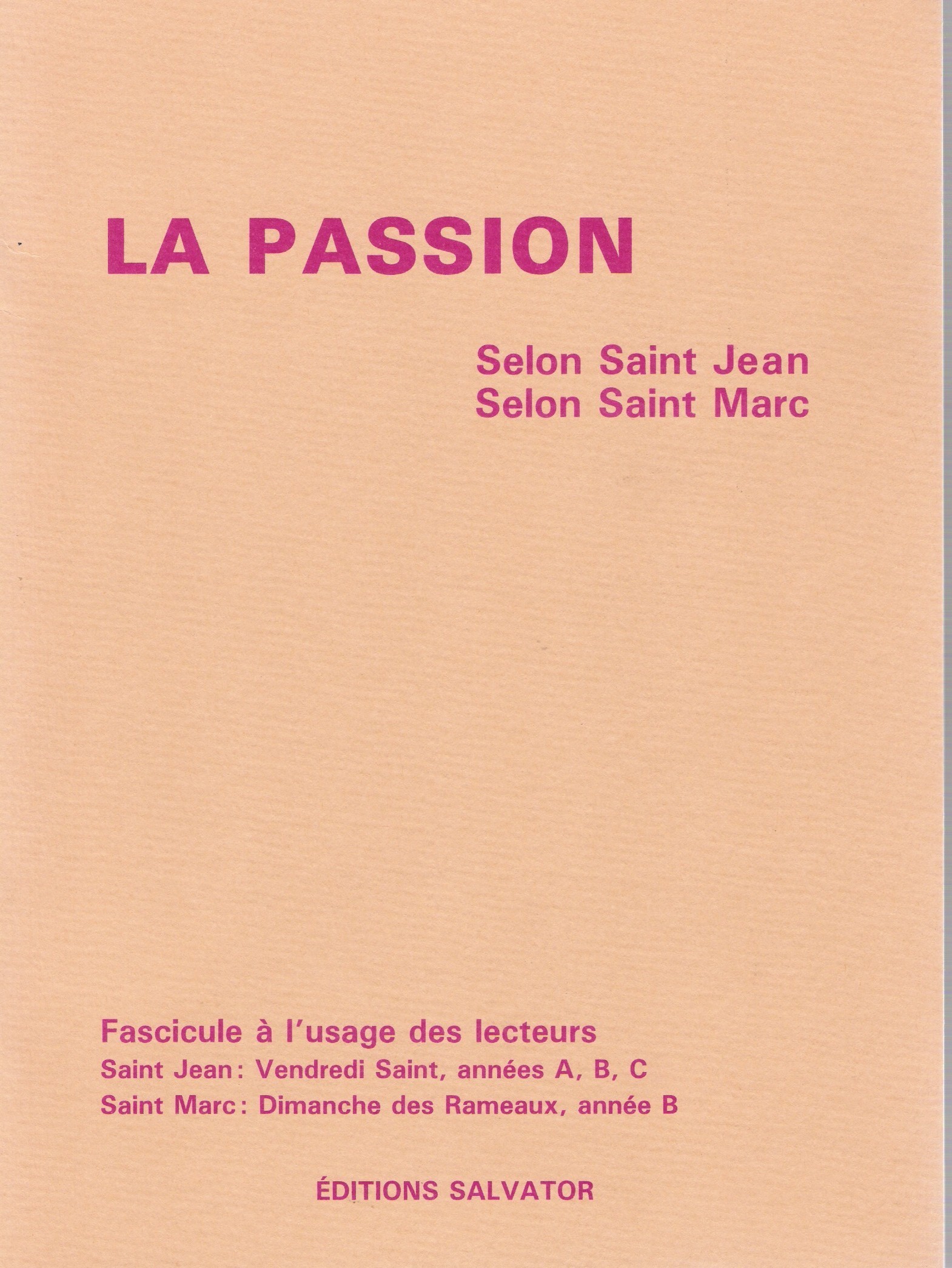 Fascicule à l'usage des lecteurs Saint Jean : Vendredi Saint, Année A, B, C Saint Marc : Dimanche des Rameaux, année B