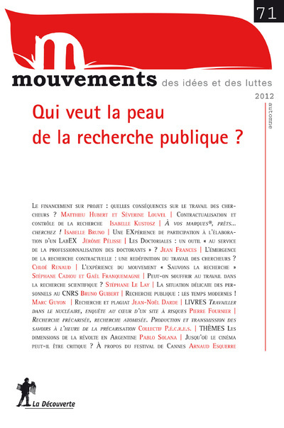 Revue Mouvements numéro 71 Qui veut la peau de la recherche publique ?
