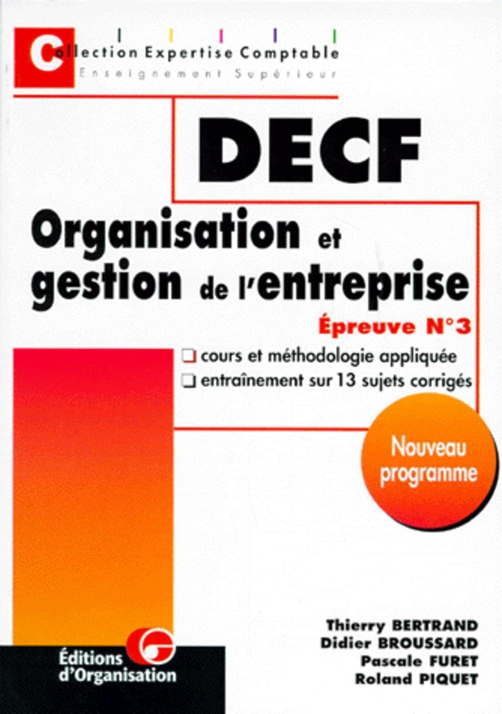 Conçu pour la préparation de l'épreuve n°3 de DECF, organisation et gestion de l'entreprise, ce manuel est aussi adapté aux besoins de tous les étudiants de l'enseignement supérieur de gestion et notamment de ceux qui désirent maîtriser l'exercice de la dissertation en économie d'entreprise dans le cadre des concours de recrutement de l'éducation nationale (CAPET et Agrégation d'économie-gestion). Une première partie présente de manière structurée les connaissances de base à bien maîtriser. Dans une seconde partie, une méthodologie de la dissertation aide à analyser le sujet, utiliser les connaissances et construire le plan. 13 cas d'application avec les corrigés permettent de tester les connaissances et leur assimilation. L'étudiant trouvera une remarquable clarté d'exposition des notions de base, une puissante incitation à les utiliser grâce à de nombreuses illustrations et situations concrètes. Ce livre vous apporte les connaissances de base et vous apprend à les utiliser de façon efficace dans le cadre de la dissertation et de l'étude de cas. Nouveaux programmes officiels applicables à partir de la session 1999. La collection "expertise-comptable" dirigée par Pascal Dénos et Didier Leclère propose des ouvrages permettant une préparation rapide et efficace aux épreuves du DPECF, du DECF et du DESCF. Son objectif est d'aider l'étudiant ou le jeune professionnel à consacrer à la préparation de l'examen un minimum de temps pour un maximum de résultat. Pour ce faire, il faut une tête bien faite, et bien préparer à la technique de l'épreuve.