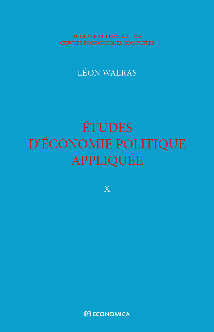Walras A. & L. - Œuvres économiques complètes - Vol. 10
