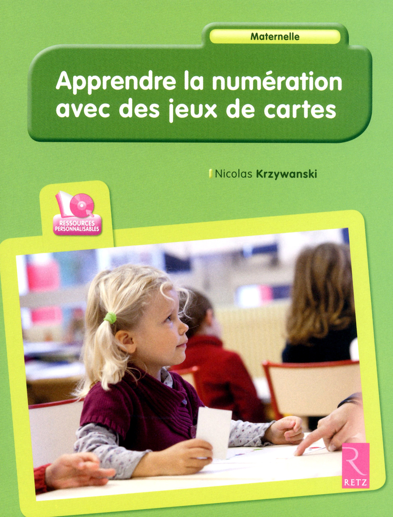Une approche de la numération à l'école maternelle par le biais de nombreux jeux de cartes stimulants. Un ouvrage-ressource mixte (papier + numérique) très original, qui offre la possibilité à l'enseignant de personnaliser les ressources proposées. Dans le but d'apprendre à compter aux jeunes enfants ou de conforter leurs acquis en numération, cet ouvrage propose des jeux de cartes qui peuvent être utilisés de manière différenciée selon l'âge et/ou le niveau de ceux-ci. En effet, si les jeux favorisent la socialisation (" vivre ensemble ", c'est apprendre à respecter les règles du jeu, écouter l'autre, attendre son tour, échanger, coopérer...), ils permettent également aux élèves : de mettre en œuvre des procédures empiriques de numération, de dénombrer de 1 à 6, puis de 1 à 10, de développer des stratégies dans le but de réaliser des collections, de reconnaître des quantités organisées dans différentes configurations (chiffres, doigts, constellations)... Vingt-trois règles de jeux de cartes, déclinées à chaque fois selon deux ou trois niveaux, sont ici proposées : à partir de cartes " classiques ", que l'on trouve dans le commerce (jeux du nigaud, de la bataille, des petits paquets, de la scopa...), à partir de cartes, de grilles de loto et de tableaux à double entrée fabriqués avec les modèles fournis (jeux d'appariement, de mémoire, des familles...). Le CD-Rom contient une application avec des ressources couleur nécessaires à la mise en œuvre des jeux : plus de 400 cartes contenant de 1 à 10 éléments discriminants, 24 grilles de loto, 2 tableaux à double entrée. Elle permet de personnaliser ces ressources : colorier les cartes à sa guise à partir d'une vaste palette de couleurs, créer ses propres grilles de loto à partir de 4 gabarits (4, 6, 8 cases et loto codé de 12 cases), créer ses propres tableaux à double entrée à partir de 9 gabarits. ------------------------------------------------------------------------------------------------------- Lors de la première utilisation, vous devez entrer le numéro de série présent à l'intérieur de la pochette du CD-Rom. Attention ! Ce numéro de série permet d'installer l'application sur 5 ordinateurs différents , pour une durée illimitée . CONFIGURATIONS REQUISES PC : Windows XP, Vista, 7, 8, 10 - 64 bits - Processeur Intel® Pentium® 4 à 2,33 GHz ou équivalent XP, 7 : 1 Go RAM - Vista, 8-64bits : 2 Go RAM - Résolution d'écran : 1024x768, couleurs : 32 bits - 128 Mo de mémoire graphique recommandée - Espace disque requis : 50 Mo - Lecteur de CD-Rom MAC : Apple MacOS 10.5, 10.6, 10.7 - Processeur Intel Core™ Duo – 1,33 GHz - 2 Go RAM - Résolution d'écran : 1024 x 768, couleurs : 32 bits - 128 Mo de mémoire graphique recommandée - Espace disque requis : 50 Mo - Lecteur de CD-Rom Les fonctions d'impression proposées dans l'application nécessitent que l'ordinateur soit connecté à une imprimante. L'ouverture des fichiers " pdf " générés par l'application requiert la présence d'un logiciel adapté. Par exemple : Adobe® Reader® – http://get.adobe.com/fr/reader/