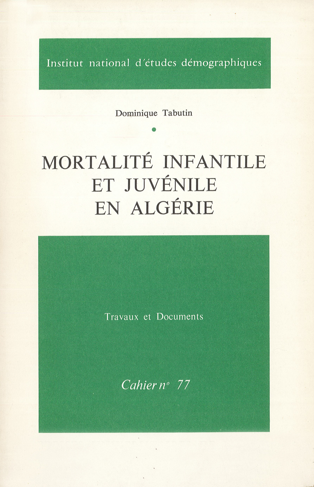 par Dominique Tabutin, TABUTIN DOMINIQUE