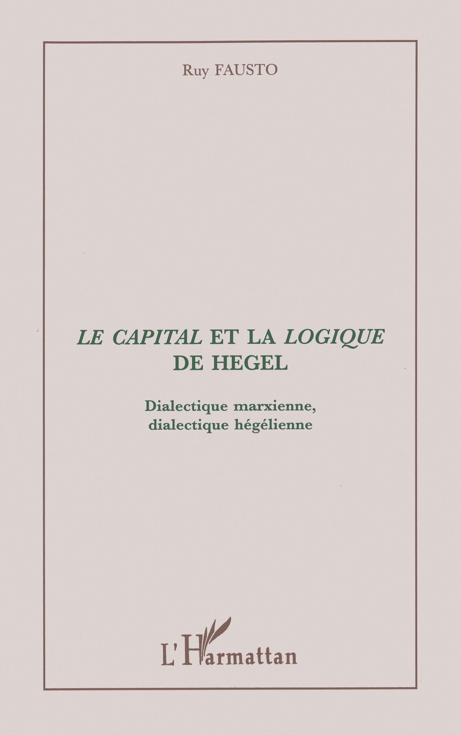 Ruy Fausto étudie les rapports entre la logique du Capital et la Logique de Hegel privilégiant d’abord quelques moments particulièrement marqués par l’hégélianisme dans le livre I du Capital, pour essayer ensuite une percée dans l’ensemble des trois livres, à la recherche d’une caractérisation des dialectiques hégélienne et marxienne. La réponse met l’accent sur le rôle de l’entendement ainsi que sur la nature et l’agencement des différents registres dialectiques (être, essence, concept...). D’où quelques conséquences « pratiques », esquissées dans la postface sous forme d’une analyse critique de la politique de Marx.