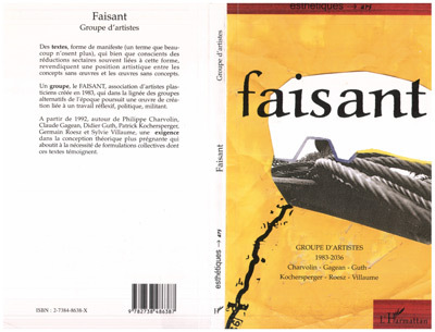 Des textes, forme de manifeste, revendiquent une position artistique entre les concepts sans uvres et les uvres sans concepts. Un groupe, le FAISANT, association d'artistes plasticiens créé en 1983, qui dans la lignée des groupes alternatifs de l'époque poursuit une uvre de création liée à un travail réflexif, politique, militant.