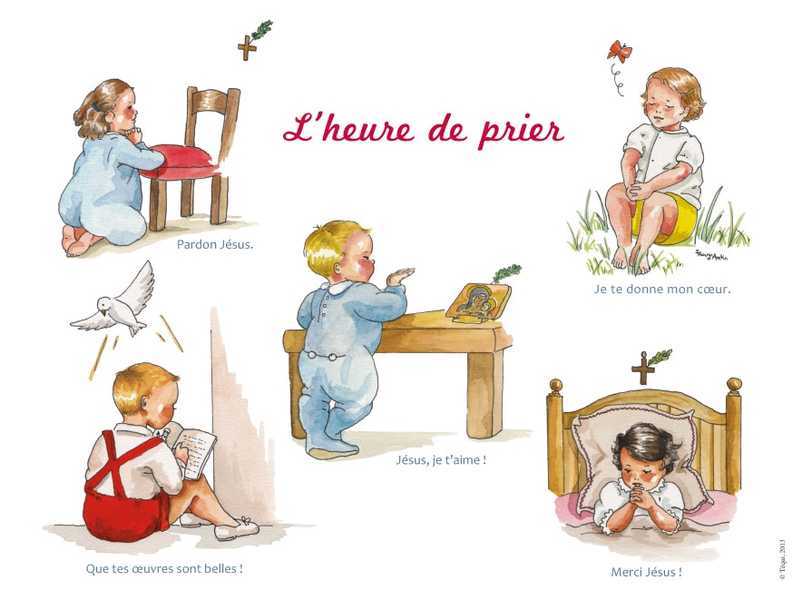 Poster souple L'heure de prier. Rappelle à l'enfant à quel moment de la journée il est bon de se tourner vers Dieu. Format : 24 x 32 cm.