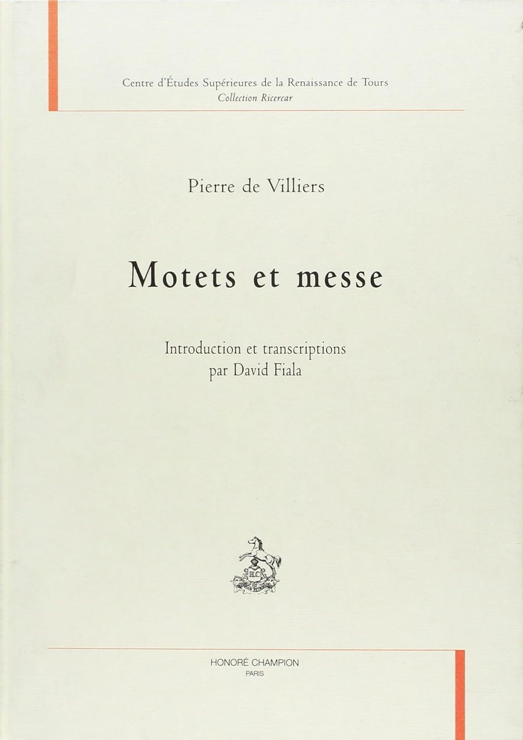 Le compositeur lyonnais Pierre de Villiers, auteur de six motets et d’une messe publiés entre 1532 et 1545, semble n’avoir composé de musique religieuse qu’occasionnellement, le plus souvent pour célébrer un événement particulier. L’introduction du volume tente donc de répondre à plusieurs questions d’ordre biographique et historique soulevées par les œuvres, comme les relations de Villiers avec la ville d’Augsbourg ou l’identité du dédicataire de son motet funèbre. Le style de ces œuvres est l’imitation continue de type « syntaxique », qui repose sur une correspondance régulière entre les sections contrapuntiques de la musique et les propositions grammaticales du texte. Ce cadre clair n’empêche pas Villiers de développer des procédés d’écriture complexes comme le montre l’étonnante facture de la messe, en canon à trois voix. Introduction et transcriptions par David Fiala