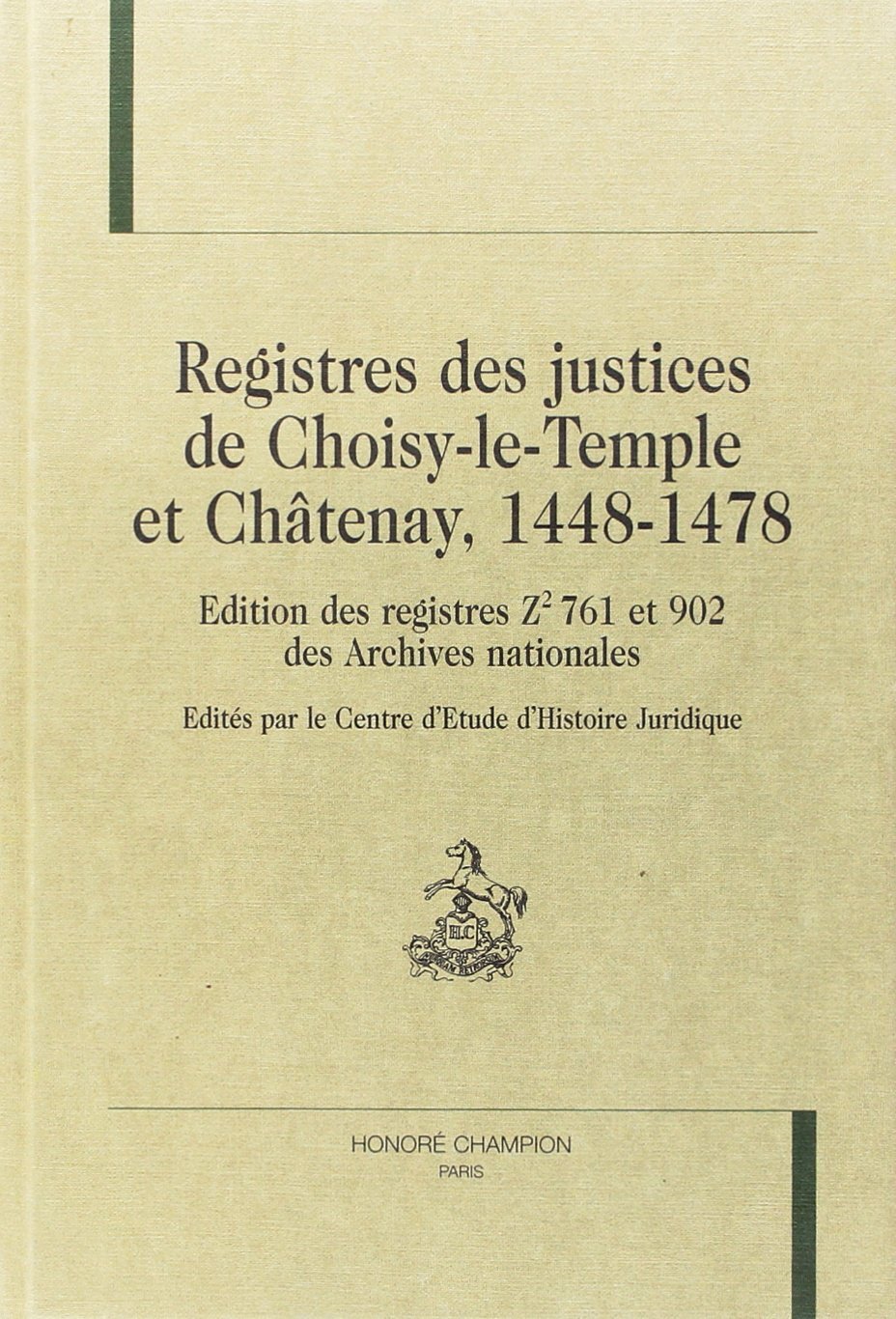 L'histoire de la justice n'est pas seulement celle des grands procès: rien de plus trompeur, à cet égard, que les "causes célèbres". Pour avoir une idée exacte de la vie judiciaire d'autrefois, il faut l'envisager dans son humble vérité quotidienne, au niveau des juridictions seigneuriales de première instance, ces "justices de village" si méprisées par les magistrats des grandes cours, et se plonger dans leurs austères registres. Très peu sont parvenus jusqu'à nous, un nombre infime en a été publié. On trouvera ici la transcription complète de deux registres qui illustrent l'activité, dans la seconde moitié du XVe siècle, des justices de Choisy-le-Temple et de Châtenay, en Ile-de-France. Ce travail a été mené à bien dans le cadre du Centre d'Etude d'Histoire Juridique, équipe de l'Université de Paris II, associée aux Archives nationales et au CNRS. Créée en 1953 par le Professeur P.-C. Timbal pour explorer le très riche fonds du Parlement de Paris, cette équipe a depuis élargi ses recherches à tout le champ de l'histoire judiciaire d'Ancien Régime. La transcription des registres a été effectuée par Mmes M.-C. Chavarot, Cl. Bloch et B. Auzary-Schmaltz, l'index a été dressé par M. Ph. Paschel.