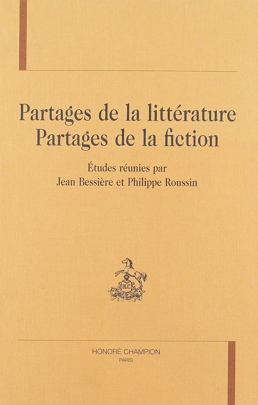 Ce volume se propose d'examiner un certain nombre de partages critiques et de préciser comment ils peuvent être reconstruits pour caractériser nouvellement les objets litté-raires. Ces partages critiques sont ceux du théâtre, de l'oral et de l'écrit, de la fiction et de ses diverses caractérisations, des notions de roman et de fiction, de la notion de monument (littéraire), tel que le romantisme la définit, du retour des personnages dans les corpus romanesques, de la littérature et des images picturales, particulièrement dans la littérature chinoise classique. Le caractère manifeste du partage de la littérature, de la façon dont tel genre ou tel mode d'écriture ou de représentation outrepasse ses limites par son médium même, ne traduit pas l'incertitude de la littérature, de sa notion, mais que la littérature n'est à être écrite et pensée que suivant son expansion, son caractère monumental, qui la donnent pour elle-même et pour les expressions, les représentations, la pensée, auxquelles elle semble d'abord étrangère. Les partages de la littérature apparaissent indissociables d'une visée du lieu commun, ce qui fait de la littérature le commun des représentations, des symboles, des arts, des discours, des divers mondes. Contributions de D. Aranda, J. Bessière, Y. Escande,P. Marot, P. Roussin, J.-M. Schaeffer, S. Weber.