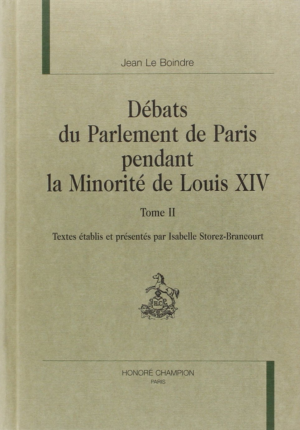 Avec une conscience professionnelle digne de la représentation que ce grand corps se faisait de lui-même, Jean Le Boindre poursuit, de décembre 1650 à la fin de 1652, ses Débats du Parlement de Paris pendant la Minorité de Louis XIV, véritable et stupéfiante " sténotypie " des séances de la cour. M. Orest Ranum en a relevé déjà, pour le premier volume, l'originalité : celle du discours " en direct " de la haute magistrature, la vérité d'un authentique débat de pensée. Le style n'en est ni académique ni fluide, rares sont les sources aussi riches de vérité et d'effets. C'est l'œuvre d'un conseiller, modeste mais attentif, qui devait passer son temps à griffonner sur des papiers les propos de ses collègues. Agir sur les événements par ses paroles ne lui a sans doute paru ni possible ni décent : il ne fut pas un " ténor " du parlement, mais, en sourdine, sa voix est parvenue jusqu'à nous pour amplifier celle des autres parlementaires.