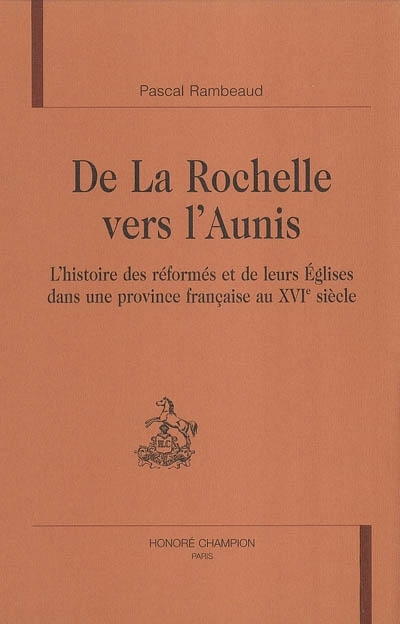 À partir d'un important matériau d'actes notariés (près de 7000) et " pappiers " de l'Église réformée rochelaise (près de 10000), Pascal Rambeaud étudie la sociologie des réformés aunisiens afin de mieux comprendre la diffusion de leur religion dans la province. Il constate notamment que le réseau des Églises réformées est édifié à partir de La Rochelle par les prédicateurs-pasteurs provenant de Genève. Seule Surgères, petite ville située à l'est, échappe à ce phénomène. En janvier 1568, beaucoup d'Aunisiens suivent la politique du corps de ville rochelais. Les actes de baptêmes, de mariages et de réceptions en l'Église de La Rochelle et ceux des notaires montrent que le nombre de réformés croît dans la province. Quant aux réfugiés qui arrivent en grand nombre jusqu'à la cinquième guerre de religion (1574-1576), ils agissent comme modèle de foi sur les consciences aunisiennes. Le nombre de nouvelles Églises dressées après 1568 traduit aussi la progression du nombre de fidèles. La période 1577-1598 est appréhendée comme l'apogée du protestantisme en Aunis qui s'affirme alors comme une véritable terre huguenote jusqu'à l'Édit de Nantes. Pascal Rambeaud montre que si tout recommence en 1585 après huit années de paix, le refuge (1585-1589) ne provoque pas de nouvelles conversions au calvinisme, religion que les réformés aunisiens pratiquent de manière bien originale.