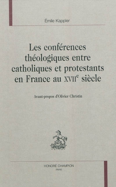 À la fin du XVIe siècle, la guerre civile, qui avait divisé et ravagé la France durant près de trente ans, cédait le pas à la polémique tant politique que théologique. Emile Kappler propose ici l`inventaire et l`analyse de l`ensemble des conférences théologiques entre catholiques et protestants au XVIIe siècle, depuis la conversion d`Henri IV jusqu`à la révocation de l`Edit de Nantes. Ces conférences opposent les tenants de deux conceptions du salut, des sacrements, de l`Église et des pratiques religieuses, dans un combat pour la vérité. Elles s`inscrivent donc logiquement dans le prodigieux courant de controverse issu de la Réforme, et dont la source ne tarit pas au XVIIe siècle. La polémique entre catholiques et protestants connaît une extraordinaire diffusion en français : traités théologiques pour spécialistes, ouvrages de vulgarisation pour les gens de robe, abrégés pour un public plus large, dialogues satiriques à caractère populaire, parfois en patois et pouvant être mis en scène pour des représentations publiques. Le regretté Emile Kappler était un spécialiste de l`histoire religieuse ; il s`intéressait tout particulièrement aux huguenots et a publié une Bibliographie critique de l`œuvre imprimée de Pierre Jurieu (Paris Honoré Champion, 2002 : collection " la Vie des huguenots "). Nous publions aujourd`hui sa thèse de 3e cycle, soutenue à l`université de Clermont-Ferrand sous la direction de Guy Demerson. Olivier Christin, professeur à l`université de Neuchâtel, spécialiste reconnu de l`histoire religieuse et tout particulièrement de la controverse entre catholiques et protestants, est l`auteur d`un Avant-Propos qui ajoute une bibliographie récente et les conclusions des dernières recherches dans ce domaine d`étude.
