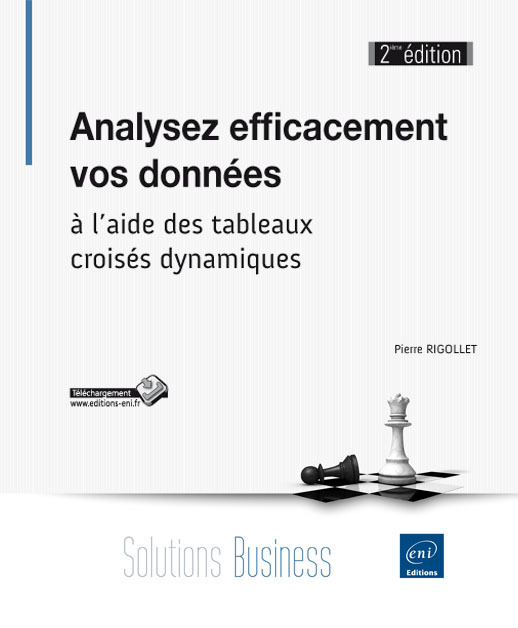 "Destiné à toutes les personnes dont la fonction nécessite la réalisation d'analyses de données à partir de sources variées, cet ouvrage sur la conception de tableaux croisés dynamiques avec Excel vous permettra de devenir un véritable expert dans la conception, l'exploitation et l'analyse des tableaux croisés dynamiques. Il couvre les versions 2010 et 2013 d'Excel ; les captures d'écran ont été réalisées à l'aide de la dernière version, Excel 2013. Grâce aux nombreux exemples que nous vous proposons de réaliser, analyses, regroupements, filtres, segments, chronologies, champs et éléments calculés, graphiques croisés dynamiques... n'auront plus de secrets pour vous. Vous allez concevoir des tableaux d'analyse pertinents, fonctionnels et variés en utilisant différents types de sources de données (une ou plusieurs feuilles Excel, tables ou requête Access...). Capable d'appliquer des mises en forme conditionnelles à vos tableaux croisés, vous pourrez aussi automatiser les tâches répétitives grâce aux nombreuses astuces fournies (notamment l'utilisation de fonctions de calcul avancées d'Excel 2013). Les exemples utilisés dans cet ouvrage proviennent de cas concrets et variés. Les fichiers nécessaires à leur réalisation sont disponibles en téléchargement sur le site des Editions ENI www.editions-eni.fr."