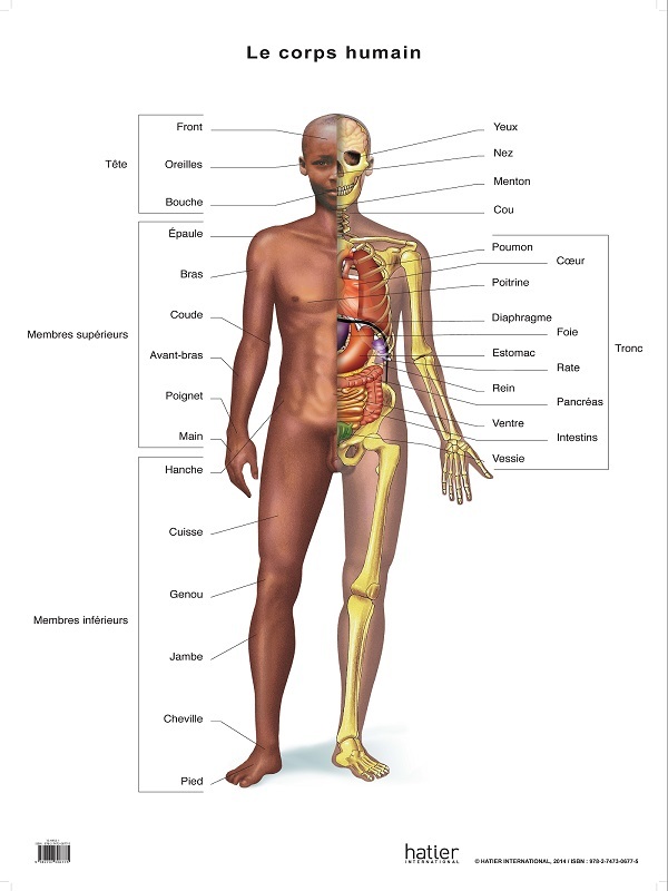 Planche de sciences recto squelette verso corps humain et organes