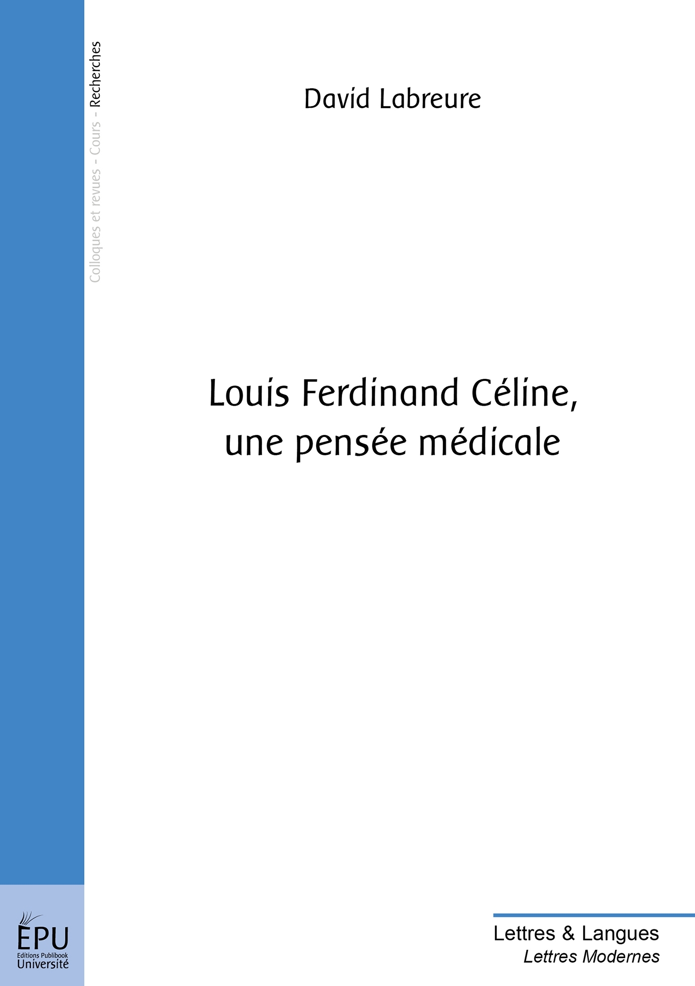 Destouches le médecin hygiéniste / Céline l'écrivain. Deux faces d'une même individualité. Entre ces deux pans, une sourde filiation, sensible dans toute son oeuvre, qu'elle soit médico-sociale ou littéraire... Ainsi, des écrits scientifiques aux romans, dans des registres changeants, engagés ou amers, une approche des maux de la société et une esquisse, idéale ou désenchantée, de celui qui la soigne, pas tout à fait étrangère au propre vécu de l'auteur... Une approche, enfin, au noir de la condition humaine, une description de l'humanité au réalisme glaçant que David Labreure traque et décèle tout au long de ce mémoire.Les préoccupations hygiénistes de Céline traversent l'intégralité de son oeuvre, de ses textes médicaux à ses romans, en passant même par sa monographie consacrée à Semmelweis. Ce thème latent, à l'origine d'une vision, à la fois compatissante et implacable, de la société et des hommes, corrélativement à la base d'une conception, oscillant entre sainteté et impuissance, du rôle du médecin, David Labreure en livre une étude détaillée, au plus près des textes, nous confrontant par la même occasion aux paradoxes et relents sombres de l'âme célinienne.