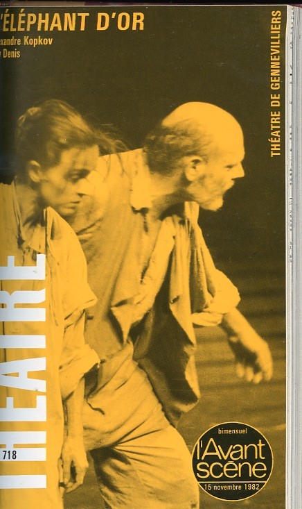 L'Éléphant d'or : (Alexandre Kopkov) Le monde des paysans simples et fabulateurs, volontiers alcooliques. Un conte philosophique : la richesse à portée de main du pauvre, le rêve bourgeois d’un brave moujik, Motchalkine... L’éléphant, il l’a trouvé, au fond d’un puits où l’aurait caché, selon la légende, un bandit dans les temps anciens, il est là, tout en or, avec des yeux de diamants, l'éléphant... Mais qu'en faire? c'est tout le problème ! Fresque de la Russie paysanne, sa roublardise et ses misères... (durée : 2 heures - 9 hommes / 7 femmes) Dorval et moi : (Denis Diderot) À partir du Fils naturel et des Entretiens dans lesquels Diderot expose ses théories sur l’art dramatique et le théâtre bourgeois du XVIIIe... Mais il y a aussi l'amour de Constance pour Dorval qui lui, aime la jeune Rosalie, amie de Clairville (durée : 1 heure et 30 minutes - 3 hommes / 2 femmes)