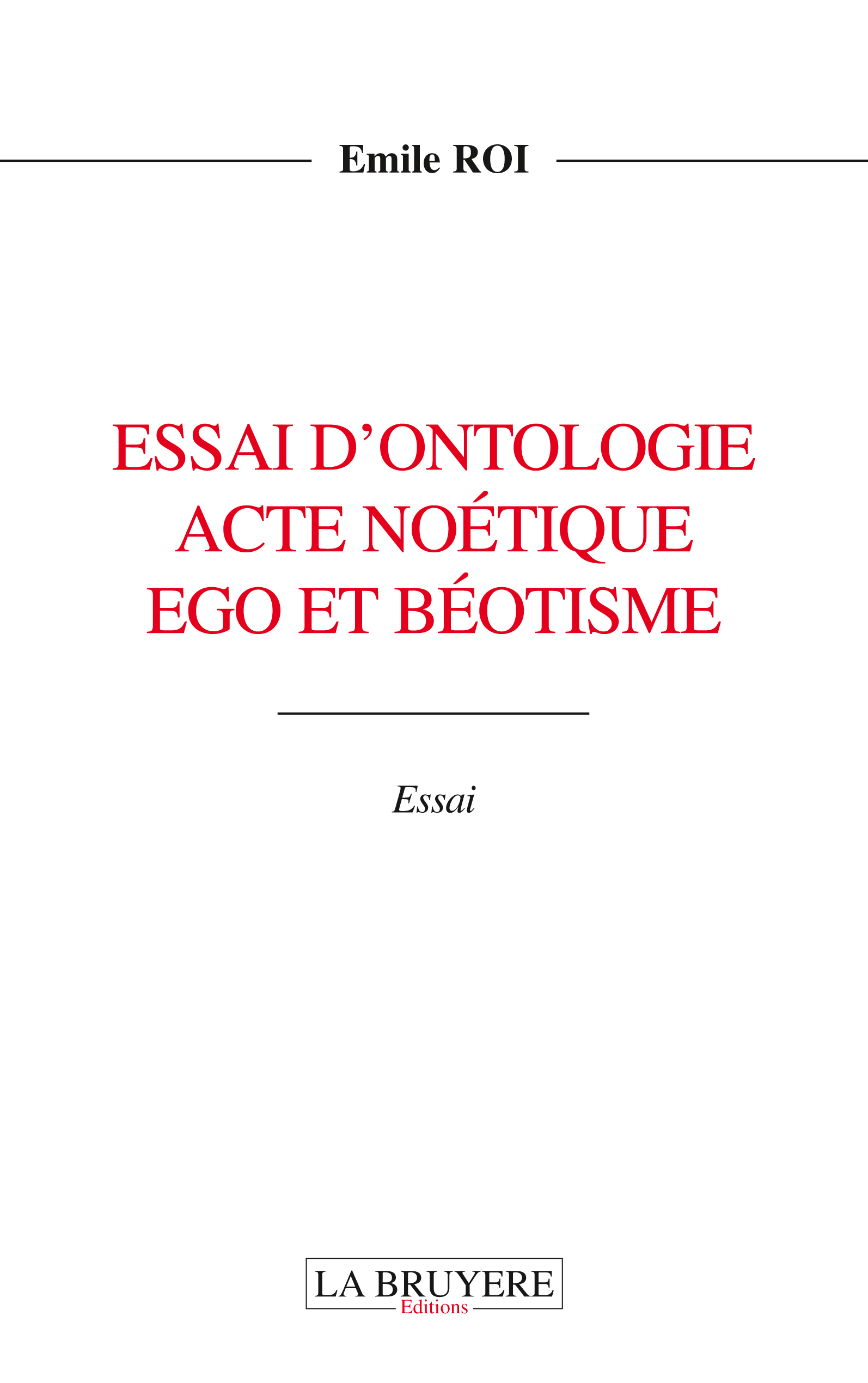 ESSAI D'ONTOLOGIE ACTE NOETIQUE EGO ET BEOTISME