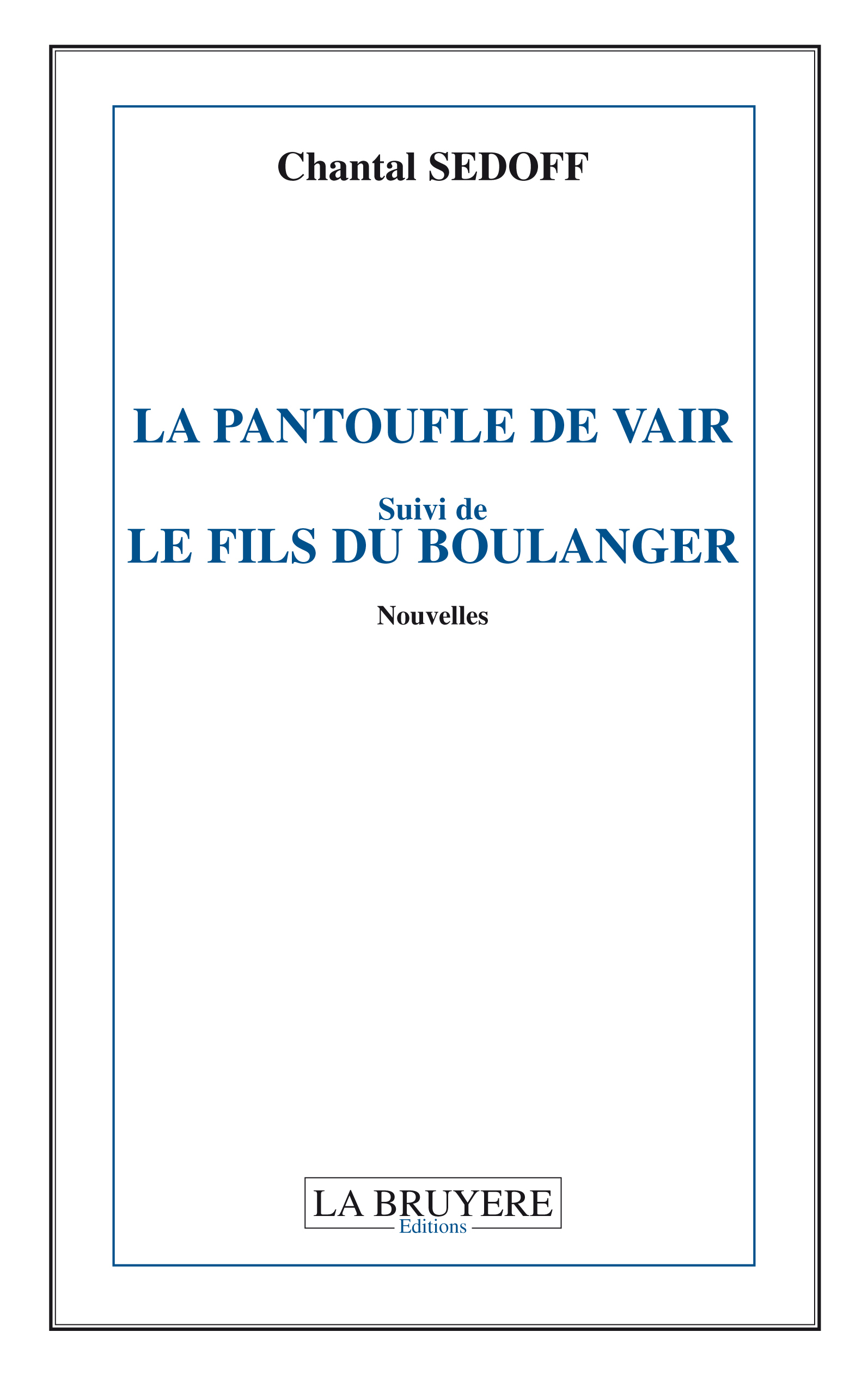 La pantoufle de vair Depuis la disparition dramatique de ses parents, Sophie s'était renfermée sur elle-même. Le Comte Orlof et ses manières de faux gentleman, l'irritait ! - Je ne l'aime pas !, s'écria-t-elle, - Vous devriez faire un effort Sophie, il y va de votre avenir ! ________________________ Le fils du boulanger Milhaud, petit village tout près de Nîmes, ses cigales, sa garrigue, "son Pain Doré"... Tranches de vie sous fond de ciel bleu et d'accents chantants... Chantal Sedoff voit le jour le 24 février 1956, à Alger, en pleine guerre civile. Exilée à Paris, où elle suivra plus tard les prestigieux cours de la Sorbonne, polyglotte, elle deviendra sinologue et réussira le grand concours du Quai d'Orsay. Vouée à une brillante carrière diplomatique, sur les traces de Mr Etienne Manac'h, Ambassadeur de France en Chine, sous l'admirable Général Charles De Gaulle. Elle souffrira d’un grave attentat antisémite en 1979, dont elle gardera les stigmates tout au long de sa vie... Désormais, elle se consacre entièrement à l'écriture. Chantal vous souhaite une agréable croisière de lecture, en espérant conquérir votre cœur !