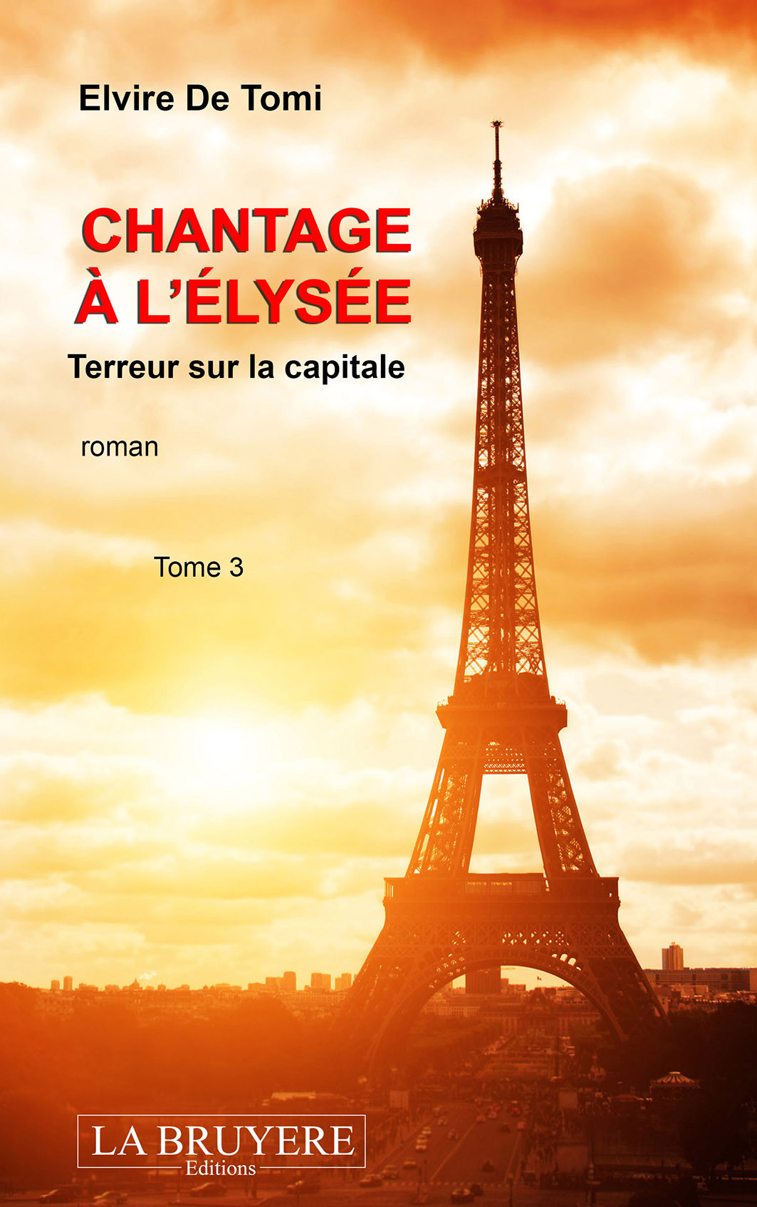 L’attentat de Genève semble avoir redistribué les cartes parmi nos héros. Abandonnée par Julien, Léa se réfugie dans les bras de Dumas pour tenter de se reconstruire. Or c’est sans compter sur l’impitoyable secrétaire général Jacques Lambert : ayant découvert la liaison interdite du président, il éloigne la jeune femme au bout du monde. Le scandale évité, la présidence sauvée, la vie reprend bien vite son cours. Mais pour combien de temps ? L’ombre du VPR et de l’insaisissable Valérie plane toujours sur le pays. Lorsqu’elle s’abattra à nouveau sur le chef d’État, c’est Léa, l’exilée, qui pourrait bien être son ultime recours. La jeune femme acceptera-t-elle une nouvelle fois de se sacrifier pour l’homme qu’elle aime ? Face aux terroristes déterminés à s’emparer de la dernière arme secrète de la France, pourra-t-elle compter sur Julien pour l’aider ? Et surtout, jusqu’où sera-t-elle prête à aller par amour ? « Terreur sur la capitale » marque la suite et la fin des aventures sensuelles et passionnantes de notre trio favori. Les multiples rebondissements, l’action trépidante et le rythme effréné emmèneront le lecteur de Paris à Miami et jusqu’au fin fond des Vosges sans lui laisser le moindre répit. Elvire De Tomi signe ici son troisième roman, après « Chantage à l’Élysée – Péril au sommet » (éditions La Bruyère, 2016).