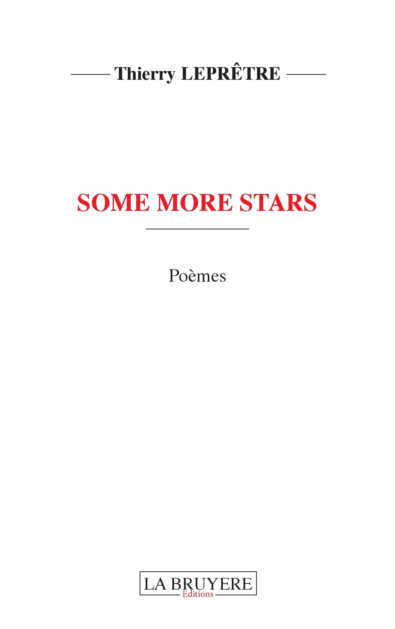 L’artiste Thierry Emmanuel Leprêtre parachève son œuvre littéraire avec ses quelques derniers textes intitulés « Some more stars » que vous pourrez apprécier après « IVORY STORIES ». Il vous remercie de votre attention sur sa poésie en vous saluant de tout cœur ainsi soit il …..