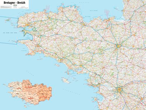 Poster Bretagne Plastifie 1/250.000 100X132 Cm