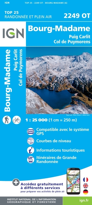 L'indispensable carte de randonnée IGN 2249OT. D'une très grande précision elle contient tous les détails existant sur le terrain : voies de communication et sentiers, constructions y compris les hangars, bois, arbres isolés, rivières, sources, sans oublier la représentation du relief par des courbes de niveau. Les sentiers balisés et les informations touristiques sont également représentés.Communes couvertes : Ax-les-Thermes, Dorres, Enveitg, Porta, Porté-Puymorens, Bourg-Madame, Latour-de-Carol, Orgeix, Angoustrine-Villeneuve-des-Escaldes, Mérens-les-Vals, Orlu, Ur, Savignac-les-Ormeaux, L'Hospitalet-près-l'AndorreLieux à découvrir : Parc naturel régional Pyrénées catalanes, Estany de Lanós, Étang de Naguille, Forêt Domaniale de Mérens, Forêt Domaniale de l'Hospitalet,el Punxo, Pic de Cabanette, Tose de Pédourrés, Pic de Font Freda, Pic d'Espaillat, Campalou, Pic de les Valletes, Puig de la Cometa d'Espagne, Pic de Camp Colomer, Pic Negre d'Envalira, el Tossal Colomer, Carabara, Pic Nègre de Joclar, Port d'Envalira, Refuge d'en Beys, Cascade des Bésines, Refuge des Bésines, Chaos de Targassonne, Reserva Nacional de Cerdanya, Santa Maria, Yraval, Plateau du Saquet, St-Fructueux, Refuge de Rulhe, el Castell, St-AndréDimensions : 98 cm x 66 cm