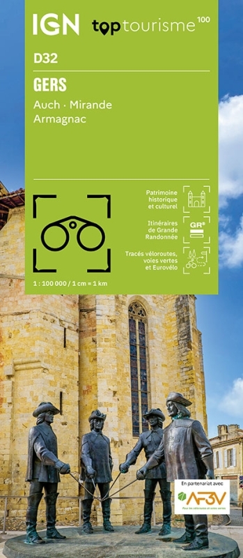 Cette nouvelle édition possède un nouveau découpage départemental. Elle intègre les parcours vélo en partenariat avec l'association AF3V – VéloRoutes et Voies Vertes. La nouvelle TOP 100 grâce à son échelle au 1:100 000ème (1 cm = 1 km) est la carte idéale pour découvrir une région et faire du tourisme à pied, à vélo ou en voiture. Un grand nombre d’informations touristiques sont représentées de façon très précises dans la cartographie : parcs et réserves naturelles, monuments, châteaux, musées, grottes, point de vues, refuges, site d’escalade et de sport en eau vive, plages surveillées… Un re´seau de routes secondaires enrichi, pour permettre des balades a` ve´lo en toute se´curite´ :• Pour la découverte à pied, l’intégralité des GR® et GR de Pays®• Pour la découverte à vélo, l’ensemble du réseau routier local et l’intégralités des Vélo-routes et Voies Vertes avec la classification AF3V avec les routes goudronnées ou empierrées, en site propre ou partagées avec d’autres véhicules• Pour la découverte en voiture, l’intégralité du réseau routier : national, régional, départemental et secondaire. Pour compléter la cartographie :• le relief est représenté par les courbes de niveau et les points cotés• un index des communes permet de se repérer facilementDes codes produits adaptés: D + N° du département.