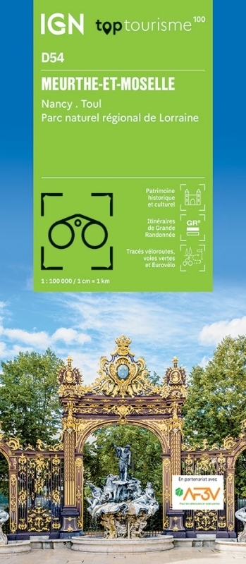 La série TOP 100 fait peau neuve avec un nouveau découpage départemental, La nouvelle TOP 100 grâce à son échelle au 1:100 000ème (1 cm = 1 km) est la carte idéale pour découvrir une région et faire du tourisme à pied (GR), à vélo ou en voiture, les parcours VELO sont réalisés en partenariat avec l'association AF3V – VéloRoutes et Voies Vertes.Légende en trois langues : français, anglais et allemand. Texte long : Cette nouvelle édition possède un nouveau découpage départemental. Elle intègre les parcours vélo en partenariat avec l'association AF3V – VéloRoutes et Voies Vertes. La nouvelle TOP 100 grâce à son échelle au 1:100 000ème (1 cm = 1 km) est la carte idéale pour découvrir une région et faire du tourisme à pied, à vélo ou en voiture. Un grand nombre d’informations touristiques sont représentées de façon très précises dans la cartographie : parcs et réserves naturelles, monuments, châteaux, musées, grottes, point de vues, refuges, site d’escalade et de sport en eau vive, plages surveillées… Un re´seau de routes secondaires enrichi, pour permettre des balades a` ve´lo en toute se´curite´ :• Pour la découverte à pied, l’intégralité des GR® et GR de Pays®• Pour la découverte à vélo, l’ensemble du réseau routier local et l’intégralités des Vélo-routes et Voies Vertes avec la classification AF3V avec les routes goudronnées ou empierrées, en site propre ou partagées avec d’autres véhicules• Pour la découverte en voiture, l’intégralité du réseau routier : national, régional, départemental et secondaire. Pour compléter la cartographie :• le relief est représenté par les courbes de niveau et les points cotés• un index des communes permet de se repérer facilementDes codes produits adaptés: D + N° du département.