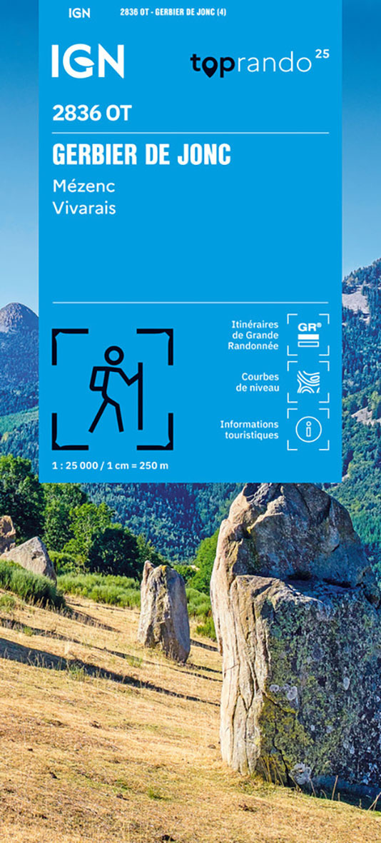 L'indispensable carte de randonnée IGN 2836OT. D'une très grande précision elle contient tous les détails existants sur le terrain : voies de communication jusqu'au moindre sentier, constructions jusqu'au hangar, bois, arbre isolé, rivière, source... Sans oublier la représentation du relief par des courbes de niveau. Les sentiers balisés et les informations touristiques sont également représentées. Communes couvertes : Saint-Martin-de-Fugères, Saint-Martial, Freycenet-la-Cuche, Saint-Clément, Saint-Front, Chaudeyrolles, Coubon, Lantriac, Laussonne, Le Monastier-sur-Gazeille, Chadron, Présailles, Goudet, Arsac-en-Velay, Les Estables, Freycenet-la-Tour, Alleyrac, Salettes Lieux à découvrir : Parc Naturel Régional des Monts d'Ardèche, Lac d'Issarlès, Suc de Montfol, Le Gerbier de Jonc, le Sépoux, Suc d'Ourseyre, Roche du Bachat, Mont Mézenc, Rocher Tourte, Monts Breysse, Mont Signon, Suc de Sara, Mont d'Alambre, Rocher des Cuzets, Monts du Vivarais, Ancienne Chartreuse de Bonnefoy, Sources de la Loire Dimensions : 132 cm x 96 cm