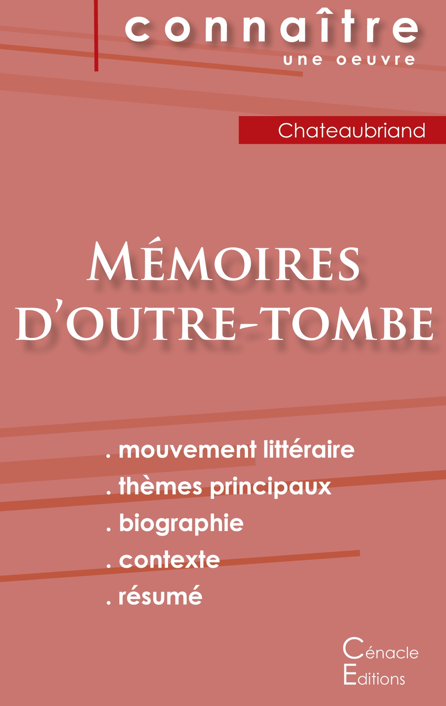 La collection « Connaître une oeuvre » vous offre la possibilité de tout savoir des Mémoires d'outre-tombe de Chateaubriand grâce à une fiche de lecture aussi complète que détaillée. La rédaction, claire et accessible, a été confiée à un spécialiste universitaire. Cette fiche de lecture répond à une charte qualité mise en place par une équipe d'enseignants. Ce livre contient la biographie de Chateaubriand, la présentation de l'autobiographie, le résumé détaillé, les raisons du succès, les thèmes principaux et l'étude du mouvement littéraire de l'auteur.