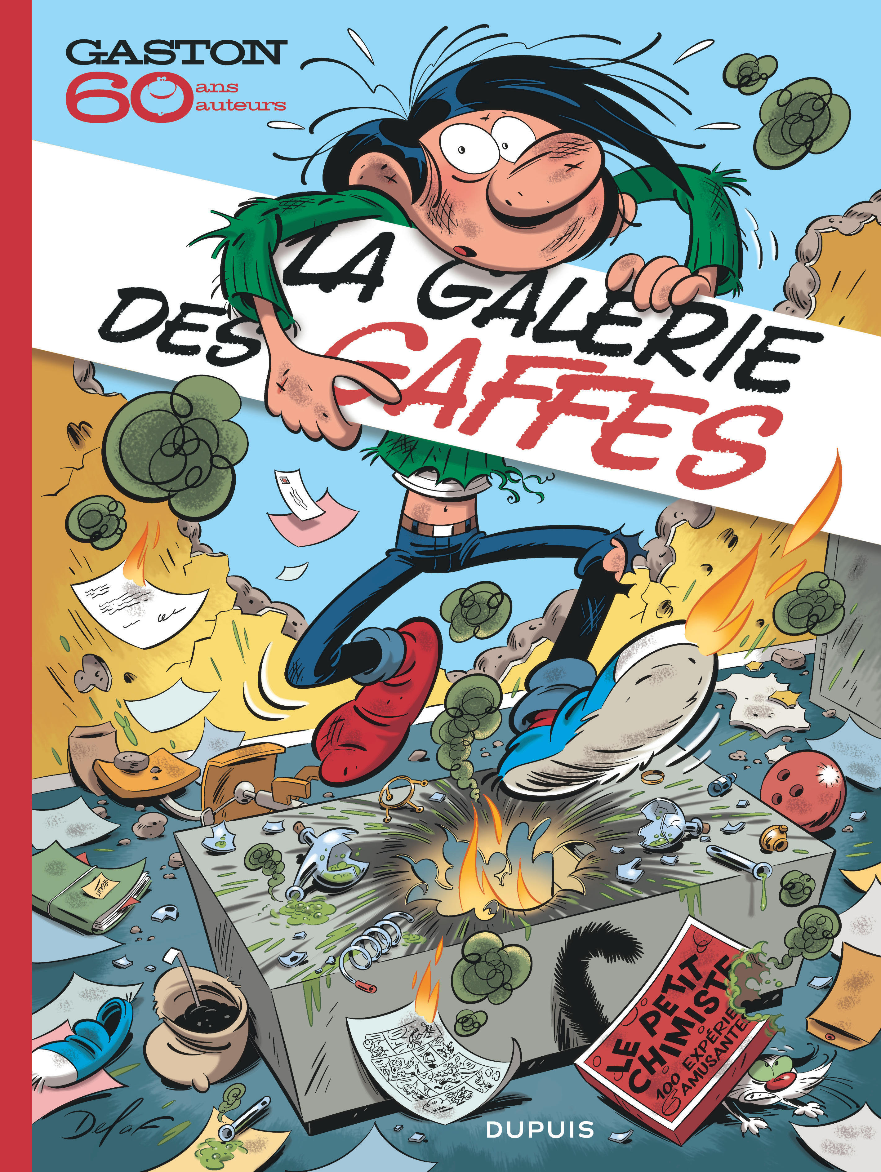 On ne présente plus Gaston, le plus célèbre gaffeur de toute l'histoire de la bande dessinée ! En 2017, cet anti héros débordant de malice et de créativité, créé par Franquin, a fêté ses soixante ans. Soixante ans d'émotions, de gags et d'inventions décalées auxquels la BPI du Centre Pompidou à Paris consacra une exposition durant plusieurs mois. À leur tour, de nombreux auteurs contemporains ont tenu à rendre hommage à cette irrésistible figure de l'humour et à son fameux pull-over vert en se la réappropriant et en lui donnant de nouveau vie à travers leurs dessins. Après l'univers de Spirou et de la BD franco-belge dans "La Galerie des illustres", c'est donc une "Galerie des gaffes" qui nous est offerte grâce à ce superbe album. Au fil des 48 planches, dont certaines sont inédites et d'autres ont été publiées dans le Journal Spirou depuis le début de l'année, c'est tout l'amour à l'égard de Gaston et de la bande dessinée que l'on retrouve avec un incomparable plaisir.