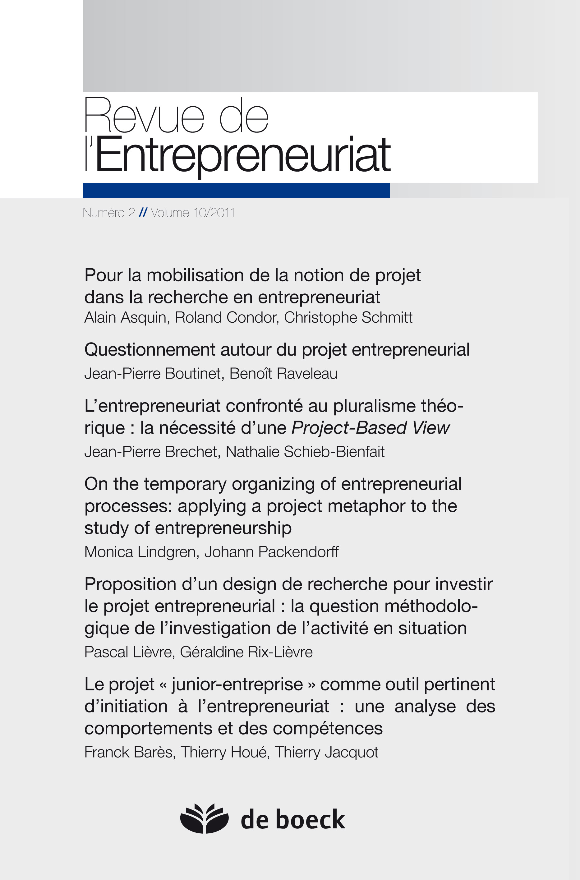 REVUE DE L'ENTREPRENEURIAT 2011/2 VOLUME 10
