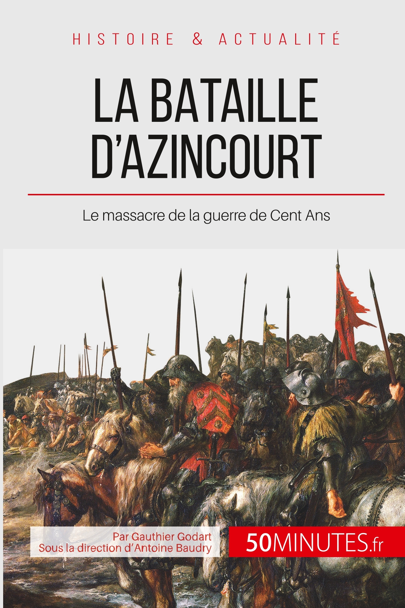 Découvrez enfin tout ce qu'il faut savoir sur la bataille d'Azincourt en moins d'une heure ! Le 25 octobre 1415, par un matin pluvieux, deux armées se font face. Les pieds enfoncés dans la boue, Anglais et Français s'observent depuis quelques heures déjà. Seule une centaine de mètres les séparent. Ils sont sur le point d'engager une bataille qui marquera durablement l'histoire. Tout en nous plongeant au coeur de ce conflit majeur de la guerre de Cent Ans, ce livre n'omet aucun détail. Vous y trouverez : des explications sur l'origine du conflit, le profil des acteurs qui ont activement participé à cet épisode tels que Henry V et Jean II le Meingre, mais aussi les stratégies mises en oeuvre et les répercussions de la bataille. Ce livre vous permettra d'en savoir plus sur : • Le contexte politique et social de l'époque • Les acteurs majeurs du conflit • Le déroulement de la bataille d'Azincourt et sa chronologie (carte à l'appui) • Les raisons de la victoire anglaise • Les répercussions de la bataille Le mot de l'éditeur : « Dans ce numéro de la collection « 50MINUTES|Grandes Batailles », Gauthier Godart nous plonge avec passion au coeur du combat qui a vu s'opposer le royaume d'Angleterre au royaume de France. D'une importance capitale, cette bataille est à l'origine du développement de l'identité nationale pour les deux adversaires. Et pour cause, pendant quelque temps la couronne française était aux mains des Anglais. » Stéphanie Dagrain À PROPOS DE LA SÉRIE 50MINUTES | Grandes Batailles La série « Grandes Batailles » de la collection « 50MINUTES » aborde plus de cinquante conflits qui ont bouleversé notre histoire. Chaque livre a été pensé pour les lecteurs curieux qui veulent tout savoir sur une bataille, tout en allant à l'essentiel, et ce en moins d'une heure. Nos auteurs combinent les faits, les analyses et les nouvelles perspectives pour rendre accessibles des siècles d'histoire.