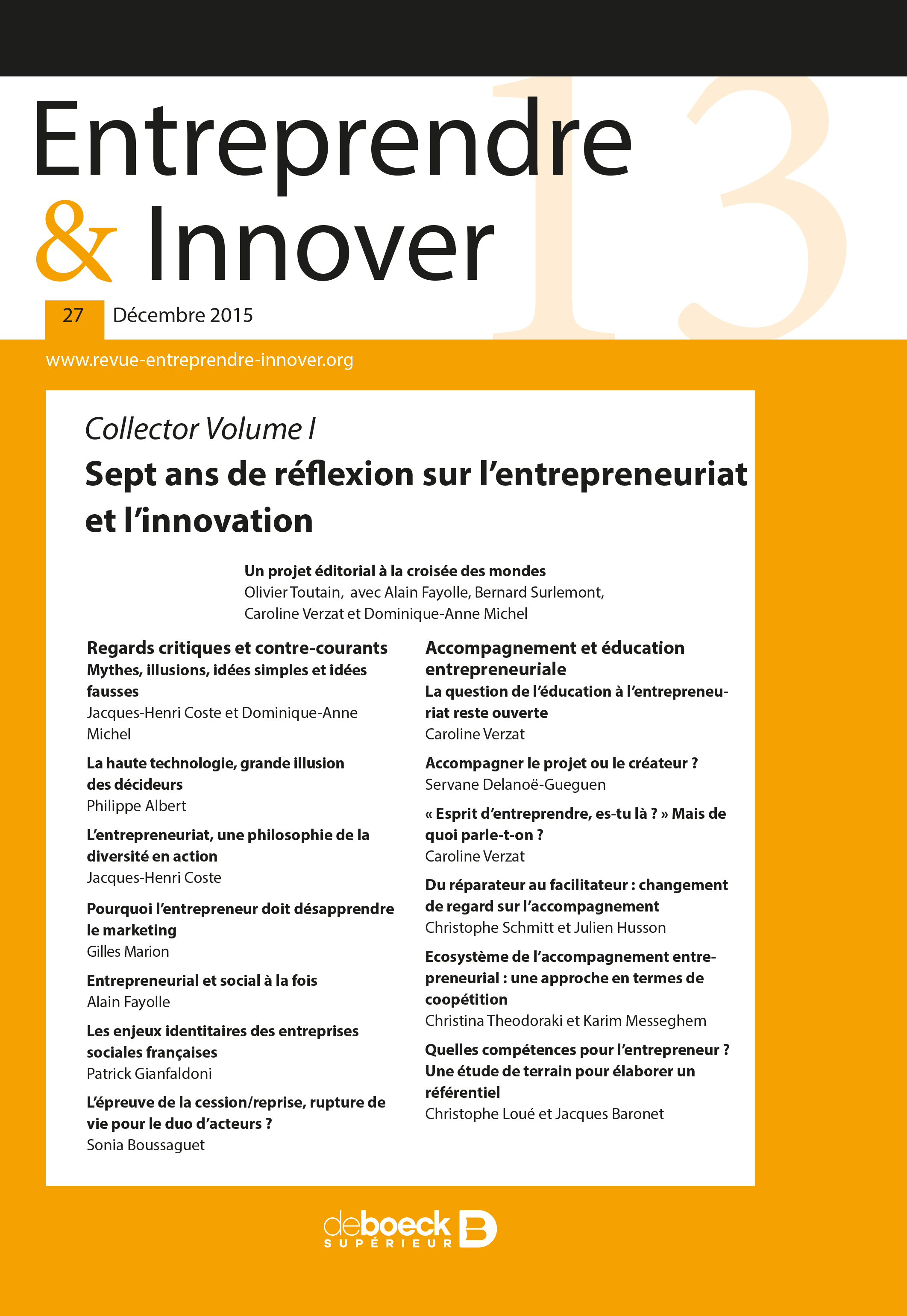 Entreprendre & Innover 2015/4 - 27 - Collector Volume I - Sept ans de réflexion sur l'entrepreneuria