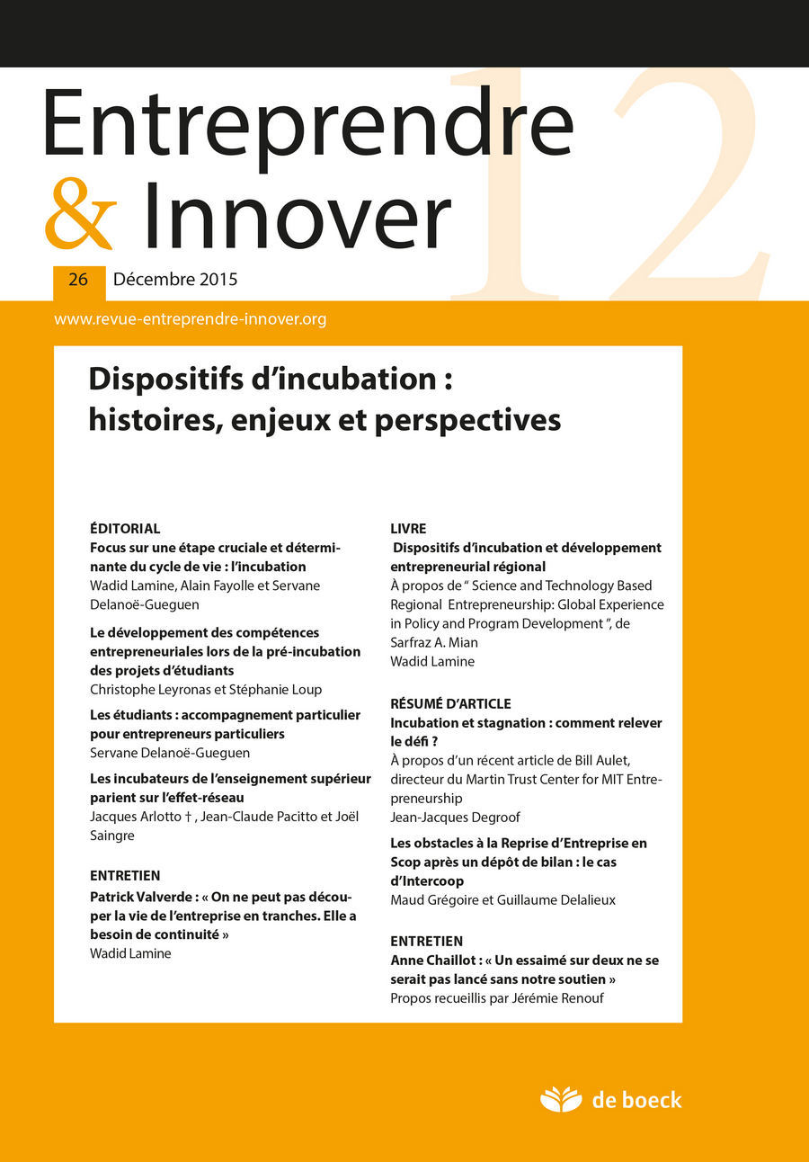 Entreprendre & Innover 2015/3 - 26 - Dispositifs d’incubation: histoire, enjeux et perspectives