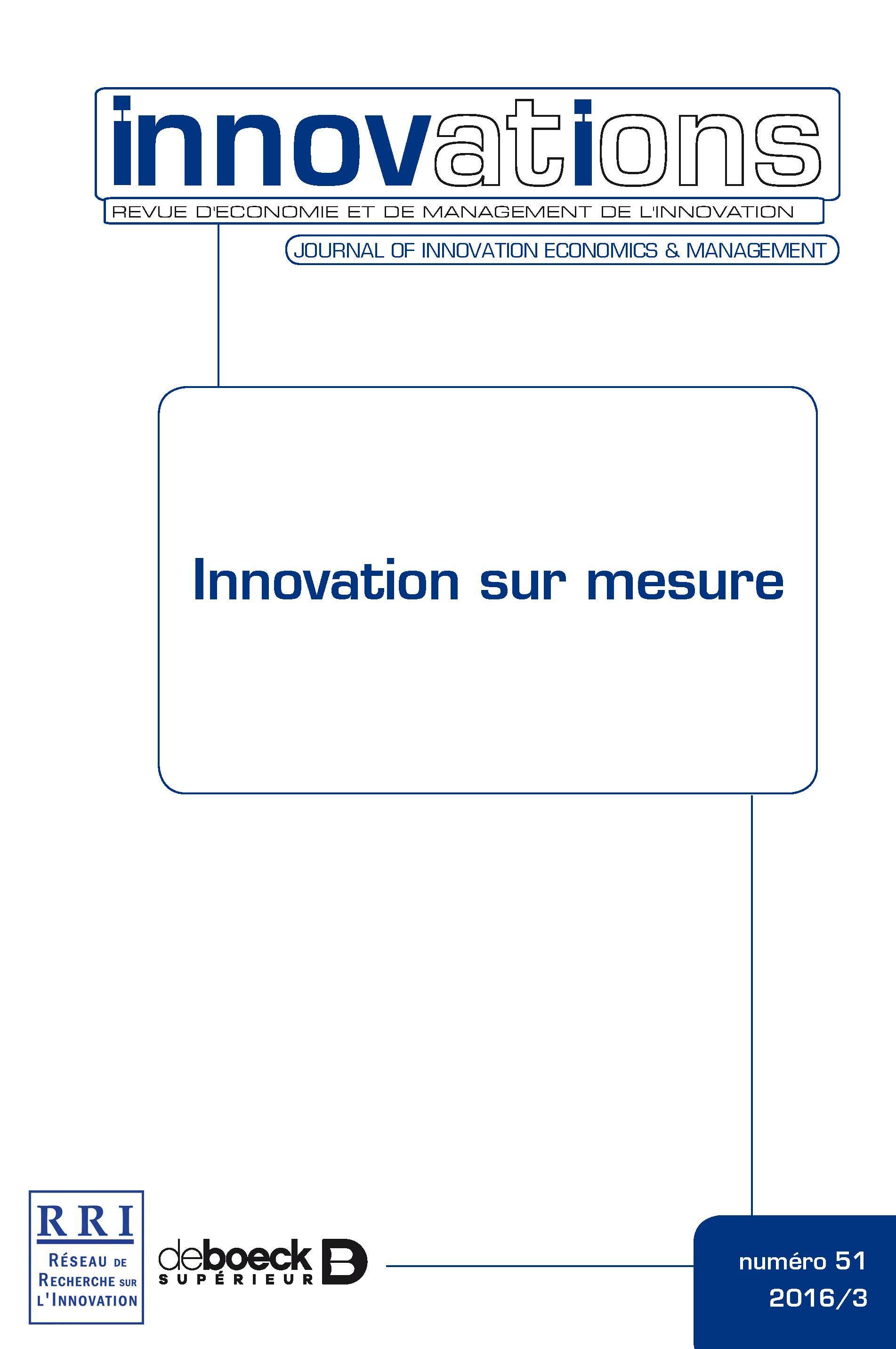 " L’« innovation sur mesure » correspond à des processus combinant disponibilité de ressources productives, besoins de marché potentiellement solvables et capacités à réaliser des modèles d’affaires économiquement (et socialement) efficaces. La question de l’adaptation de la technologie et du schéma organisationnel de production, de commercialisation et, en général, du management issus des processus d’innovation renvoie aussi bien à l’accessibilité et au coût des intrants qu’à la faculté d’apprentissage, d’appropriation et d’utilisation de nouvelles connaissances et technologies. L’« innovation sur mesure » est ainsi associée à des pratiques diverses, standardisées ou non, sachant que dans tous les cas l’objectif est de faire du profit. Ce numéro d’Innovations. Revue d’économie et de management de l’innovation est en grande partie consacrée à l’étude de la variété des processus d’innovation, avec un focus particulier sur l’innovation frugale qui doit concilier la flexibilité, la simplicité, l’intégration, l’agilité… par la création de nouveaux modèles économiques pour faire plus avec peu de moyens !"