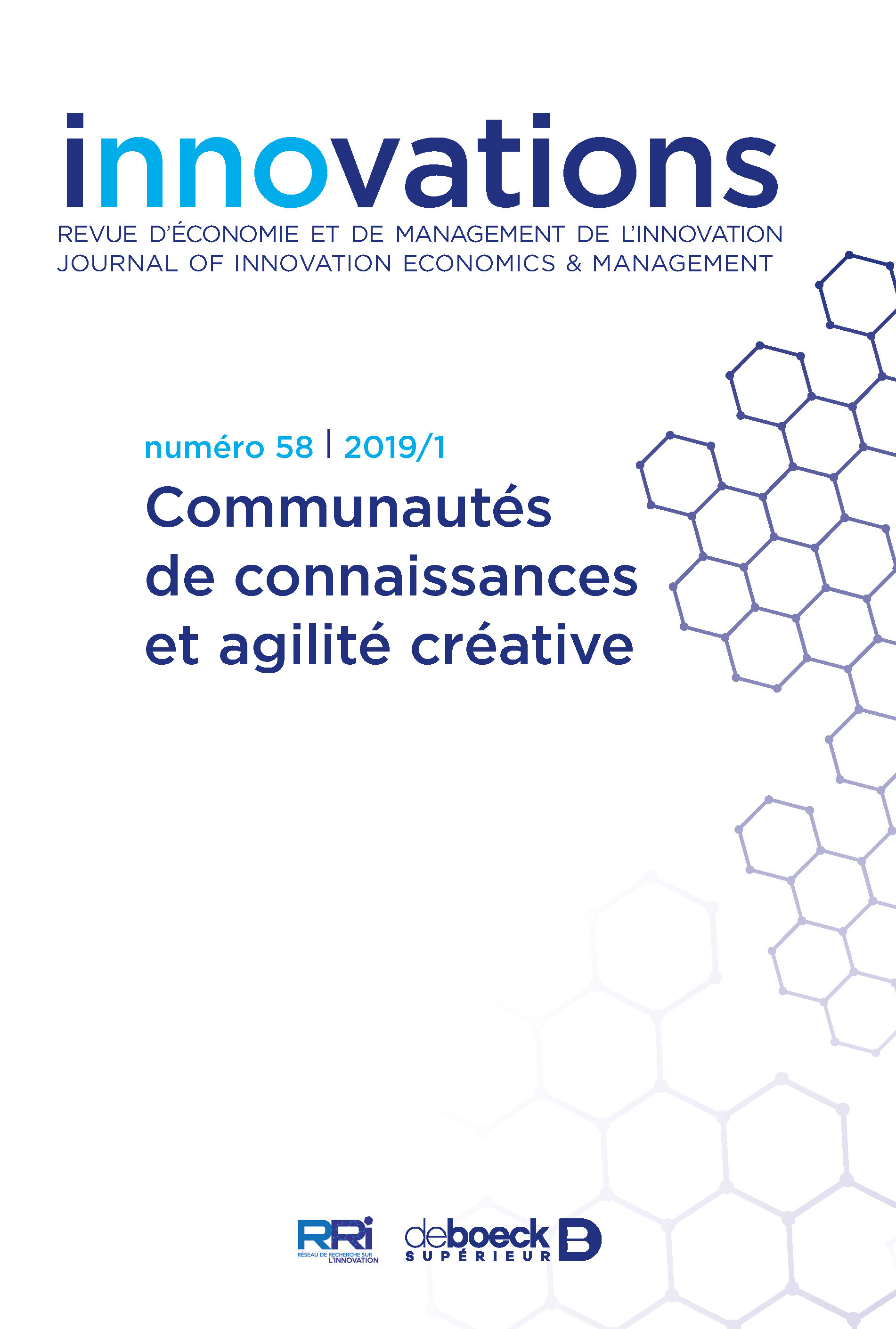 Communautés de connaissances et agilité créative L’innovation est conçue comme le fruit d’un ensemble d’interactions économiques et sociotechniques. Celles-ci irriguent l’organisation, mais se déploient au-delà de ses frontières, elles-mêmes devenues poreuses. Ce numéro d’Innovations, Revue d’Economie et de Management de l’Innovation comporte deux cahiers spéciaux qui analysent la complexité de cette organisation innovante. Le premier met l’accent sur les communautés de connaissances, internes et externes à l’organisation, qui jouent le rôle « d’accélérateur d’innovation et de créativité » mais qui soulèvent nombre d’enjeux liés à la coordination, l’utilisation ou encore l’appropriabilité de la connaissance ainsi produite. Le second cahier présente l’innovation agile comme « activateur de lien », c’est-à-dire comme une capacité de l’organisation à interagir avec l’ensemble des parties prenantes liées à la créativité et à l’innovation.