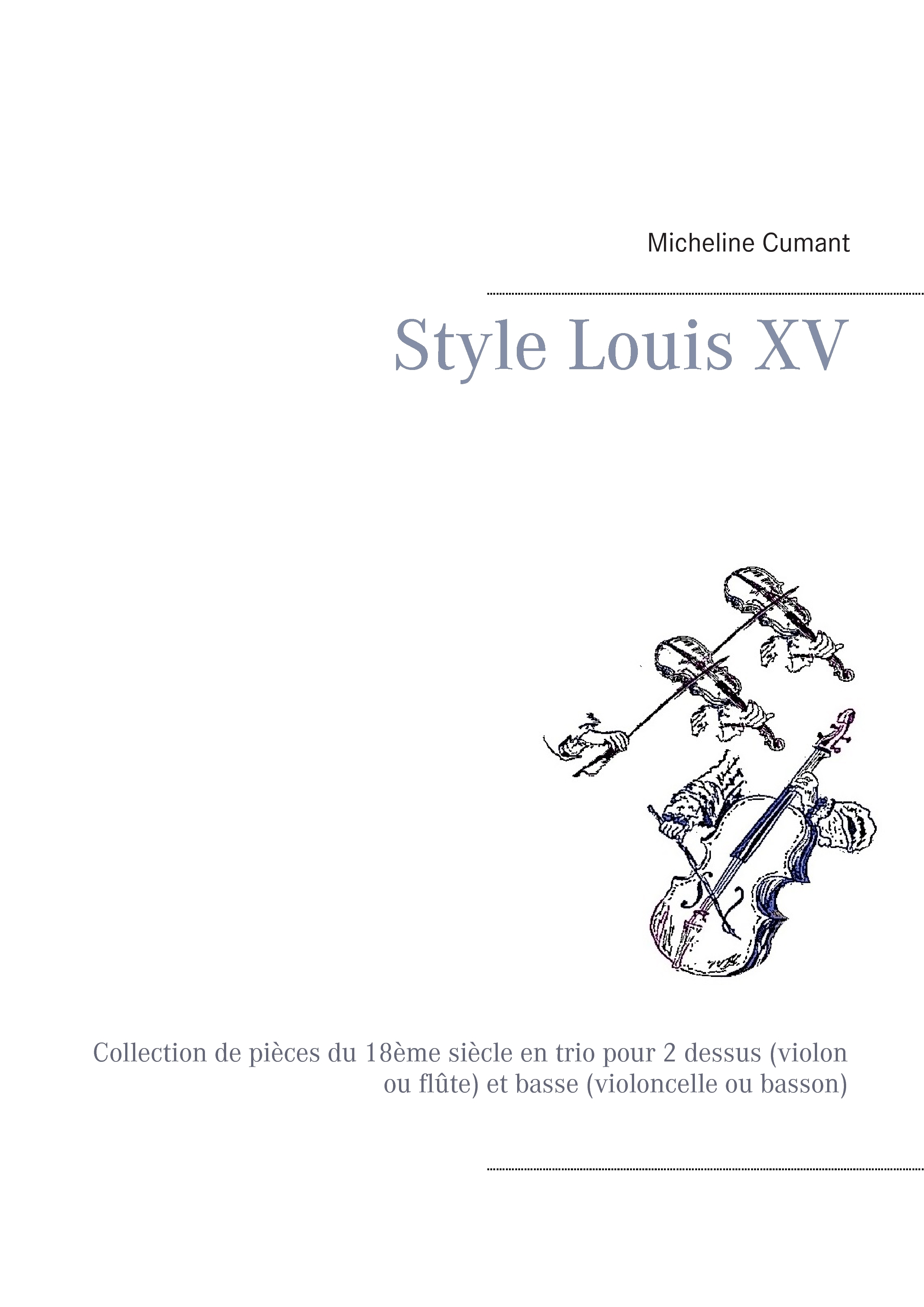 Ce recueil comprend 8 petites pièces en trio pour deux violons (ou deux flûtes) et violoncelle (ou basson), d'auteurs anonymes français de la première moitié du 18ème siècle. Elles sont jouables dès le niveau de premier cycle de conservatoire. En introduction figure un texte tiré des ouvrages pédagogiques de Michel Corrette, expliquant la manière de gérer les coups d'archet pour ce style de musique, ainsi que la façon d'exécuter les ornements (trilles, appoggiatures, mordents, etc...).